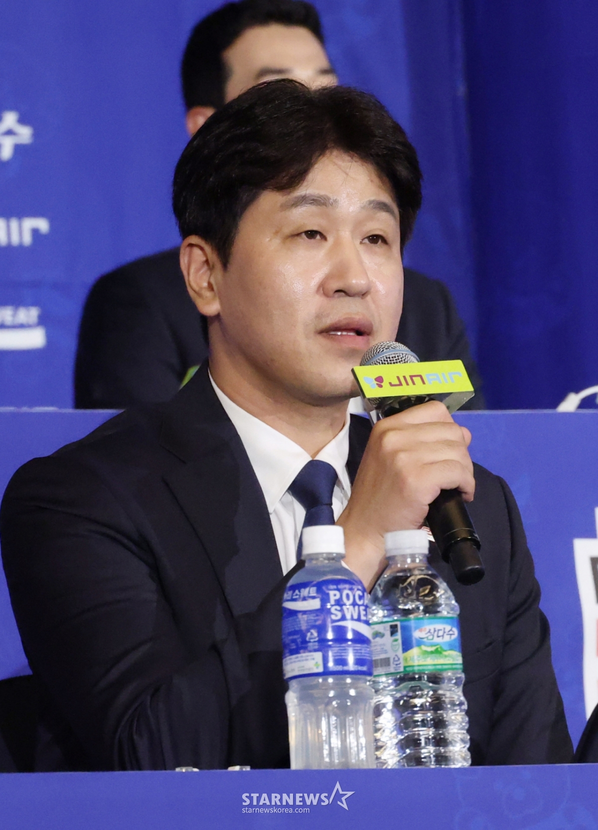 IBK기업은행 구단은 16일 서울 호텔리베라 청담 베르사이유홀에서 열린 진에어 2025~2026 V-리그 여자부 미디어데이에서 각 사령탑들로부터 가장 많은 정규리그 1위 후보로 꼽혔다. 김호철 IBK기업은행 감독을 제외한 6개 구단 감독 중 무려 5명의 사령탑의 선택을 받았다.