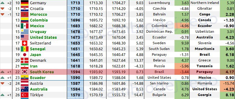 예컨대 한국은 볼리비아전에서 이겨도 2.7점 정도의 FIFA 랭킹 포인트 획득에 그치지만, 비기면 2.3점 정도를 잃는다. 패배 시엔 무려 7.3점 정도가 순식간에 날아간다. 가나전 역시도 승리 시엔 2.9점 정도를 얻지만 무승부 또는 패배 시엔 2.1점, 7.1점 정도를 잃게 된다. FIFA 랭킹 70위권대 팀들과 평가전은 승리 확률이 높지만, 그만큼 승리를 놓쳤을 때 FIFA 랭킹 포인트 손실이 적지 않다는 의미다.