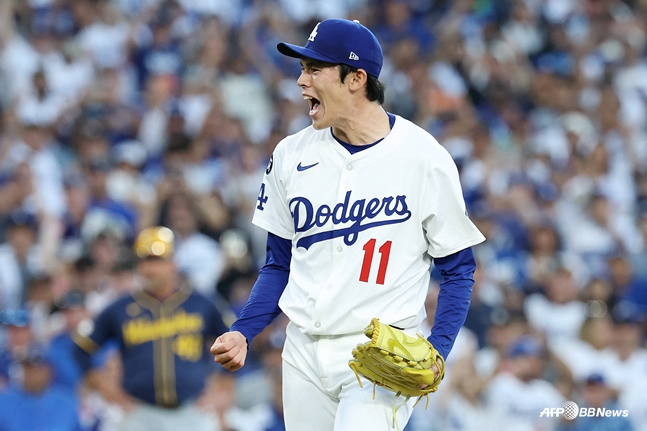 사사키는 17일(한국시간) 미국 캘리포니아주 로스앤젤레스 다저스타디움에서 열린 밀워키 브루어스와 2025 미국프로야구 메이저리그(MLB) 포스트시즌 내셔널리그 챔피언십 시리즈(NLCS·7전 4선승제) 3차전에 3-1로 앞선 9회초 세이브 상황에서 5번째 투수로 등판해 1이닝 1탈삼진 무실점의 완벽투로 세이브를 수확했다.