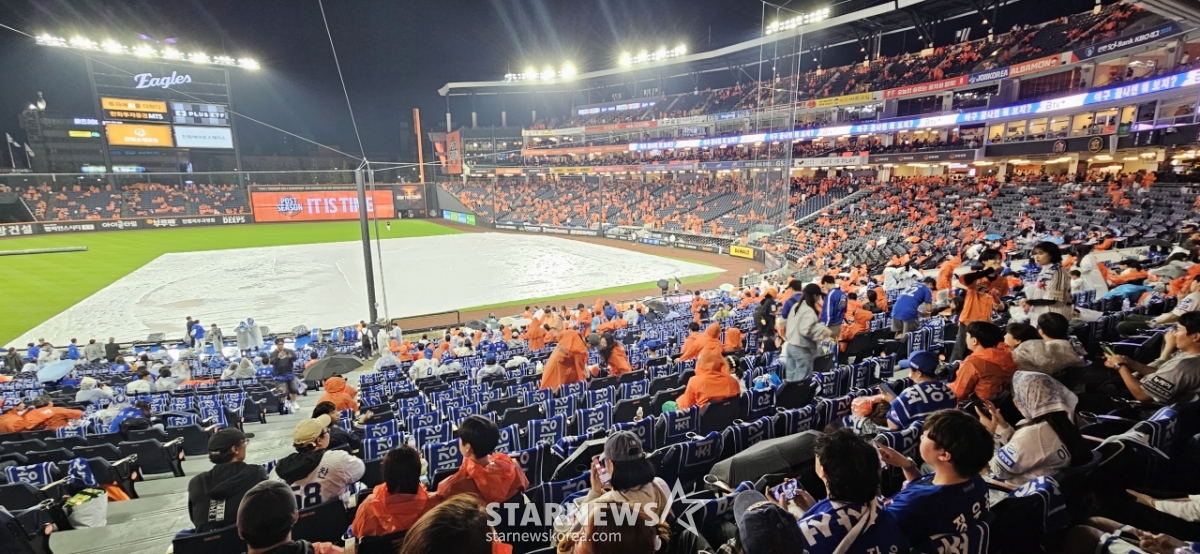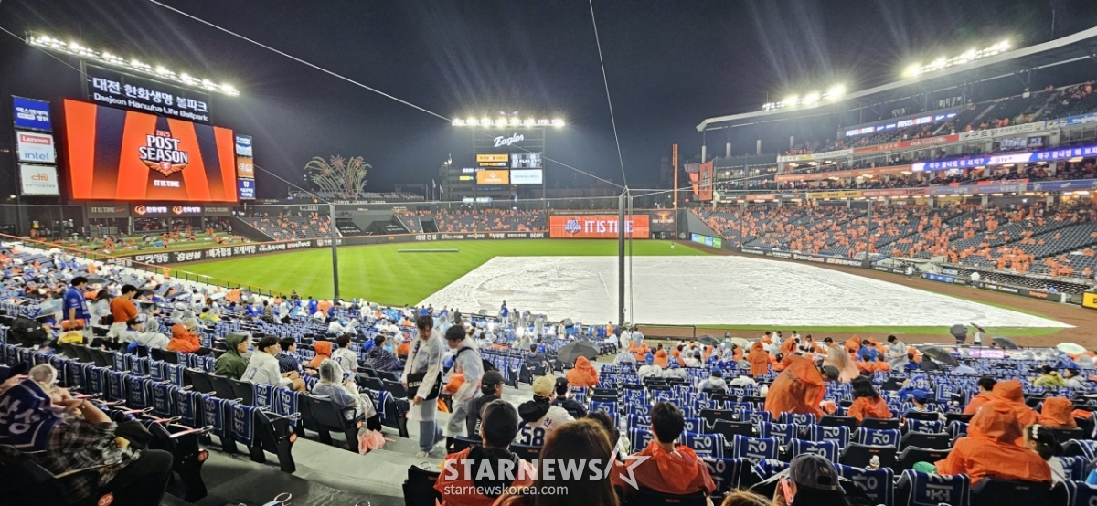 스포츠야구[포토] '가을야구 시샘하는 가을비에 방수포 덮힌 한화생명볼파크'발행 : 2025.10.17 ・ 18:26대전=강영조 선임기자17일 대전한화생명볼파크에서 열리는 2025 KBO리그 플레이오프 1차전을 앞두고 가을비가 촉촉하게 대지를 적시고 있다. 그라운드에는 방수포가 내야를 보호하고 있다. 2025.10.17.17일 대전한화생명볼파크에서 열리는 2025 KBO리그 플레이오프 1차전을 앞두고 가을비가 촉촉하게 대지를 적시고 있다. 그라운드에는 방수포가 내야를 보호하고 있다. 2025.10.17.<저작권자 © 스타뉴스, 무단전재 및 재배포 금지>볼파크대전가을비방수포한화생명추천 기사강영조 선임기자기자홈좋아요 스포츠-야구의 인기 급상승 뉴스스포츠-야구의 최신 뉴스