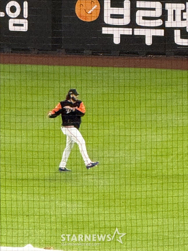 몇 차례 왕복을 이어간 폰세는 이윽고 점퍼를 벗고 유니폼 차림으로 뛰기 시작했다. 폰세의 달리기는 한동안 이어졌다. 그쳤던 비가 다시 굵어지기 시작할 때까지 그는 몸을 풀고 있었다.