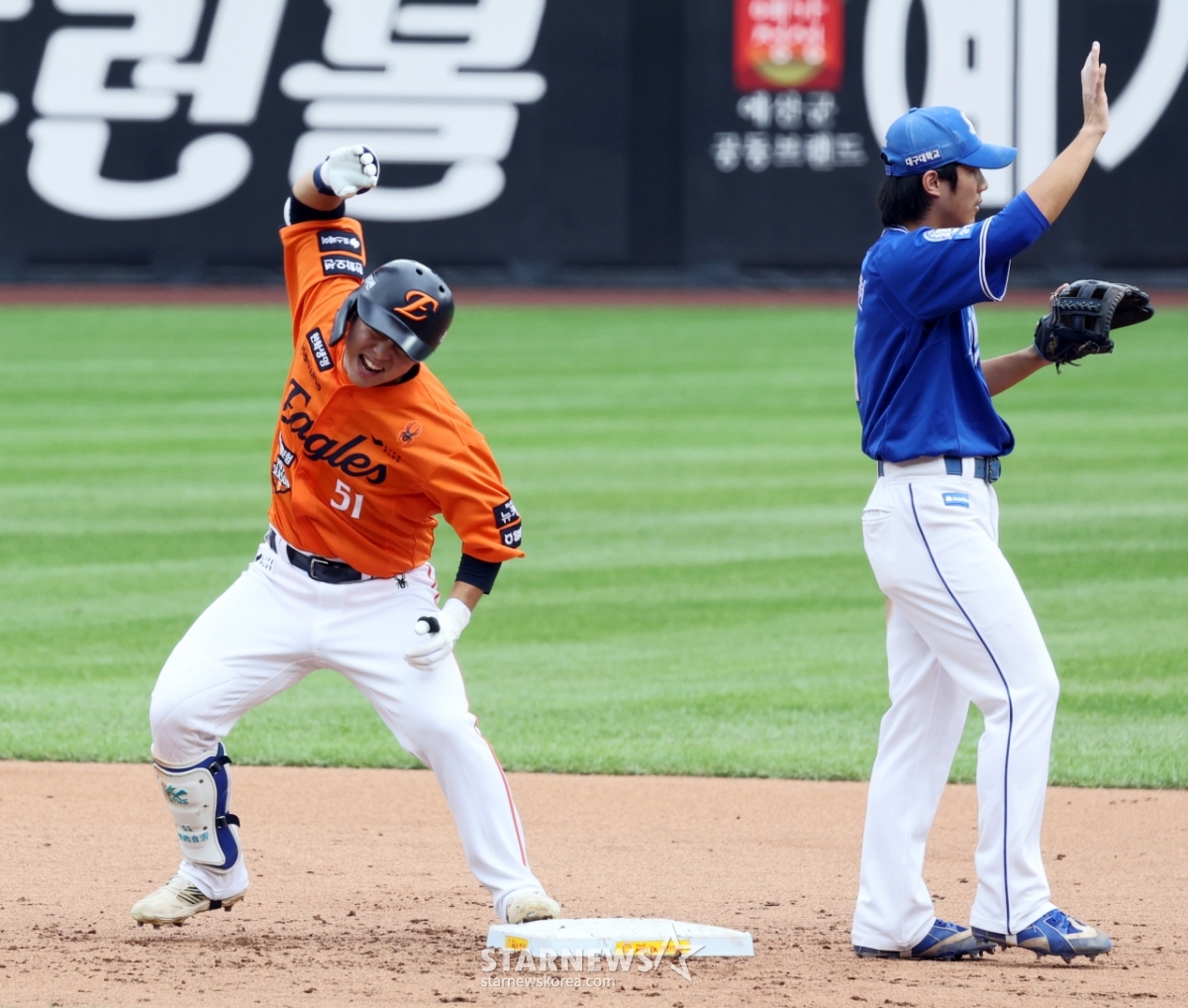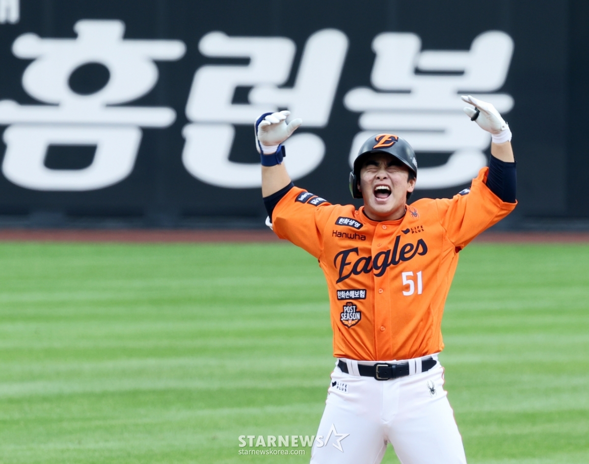 스포츠야구[한번에쓱]'만루에서 싹쓸고 환호' 문현빈발행 : 2025.10.18 ・ 15:30수정 : 2025.10.18 ・ 15:31대전=강영조 선임기자한화 3번타자 문현빈이 18일 대전한화생명볼파크에서 열리는 2025 KBO리그 삼성라이온즈와 한화이글스 플레이오프 1차전 2회말 2사 만루에서 싹쓸이 2루타를 터트린 후 환호하고 있다. 025.10.18.<저작권자 © 스타뉴스, 무단전재 및 재배포 금지>만루환호문현대전볼파크삼성추천 기사강영조 선임기자기자홈좋아요 스포츠-야구의 인기 급상승 뉴스스포츠-야구의 최신 뉴스