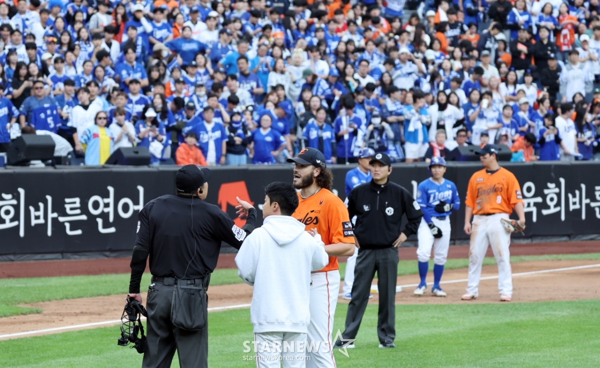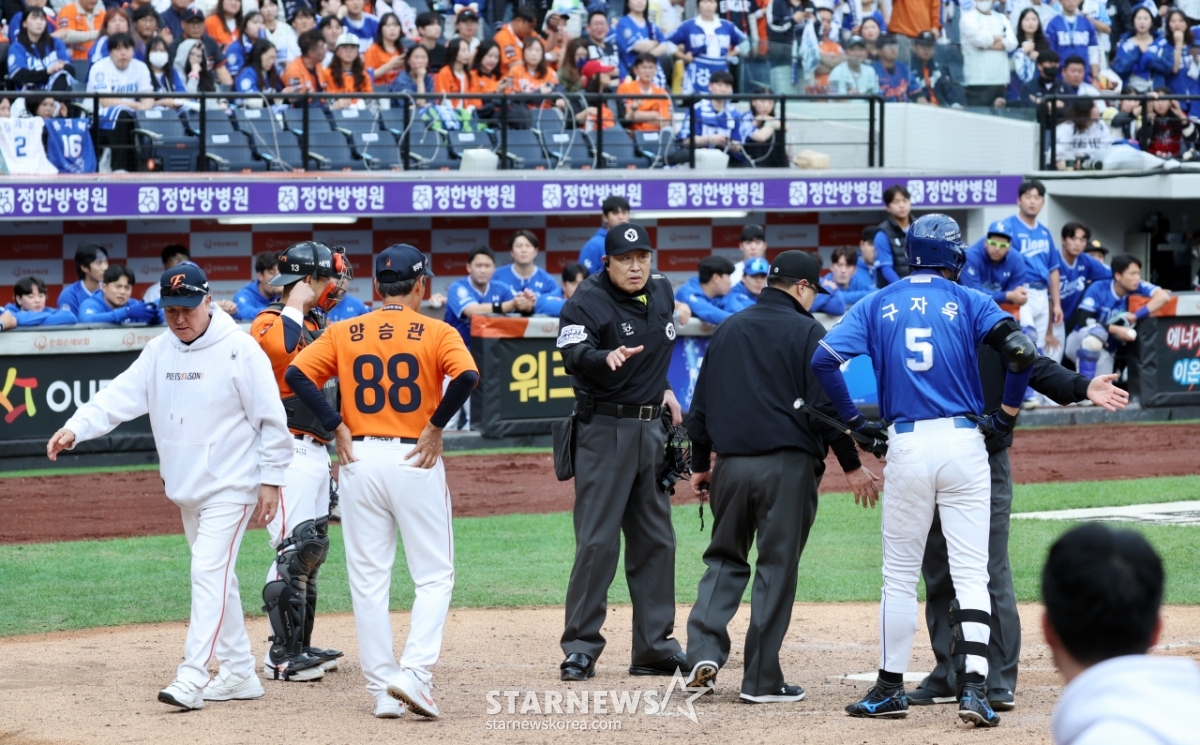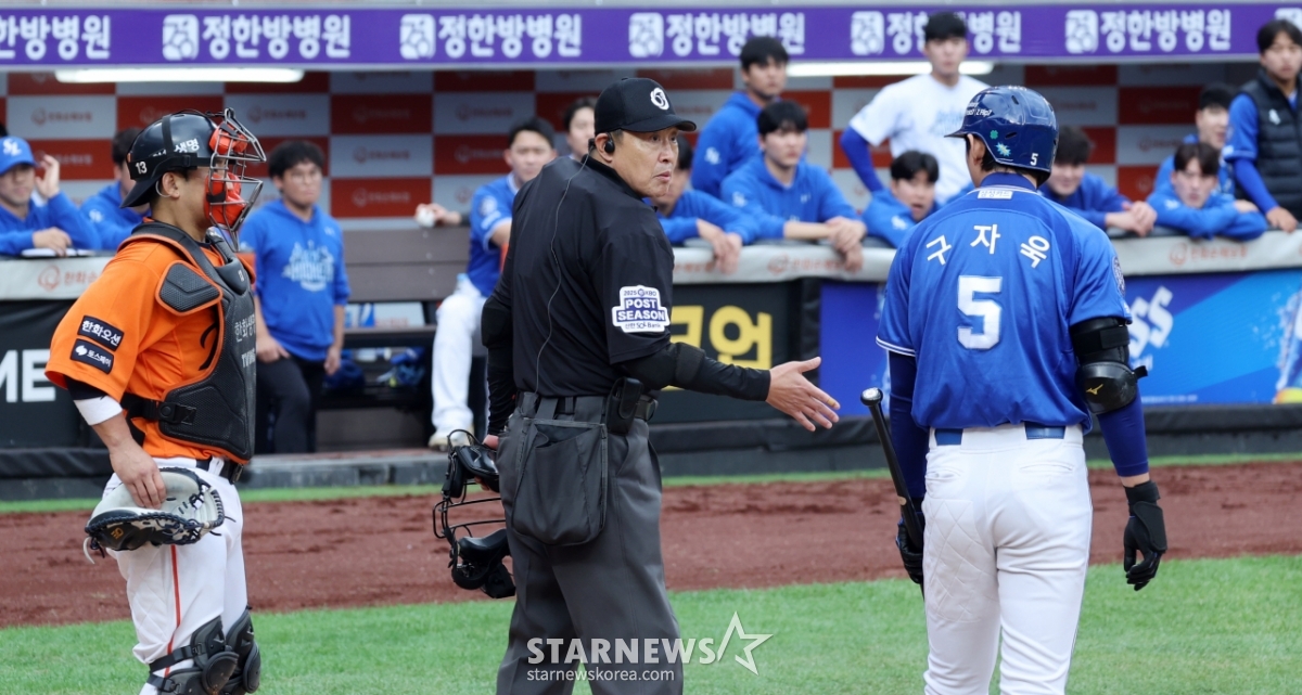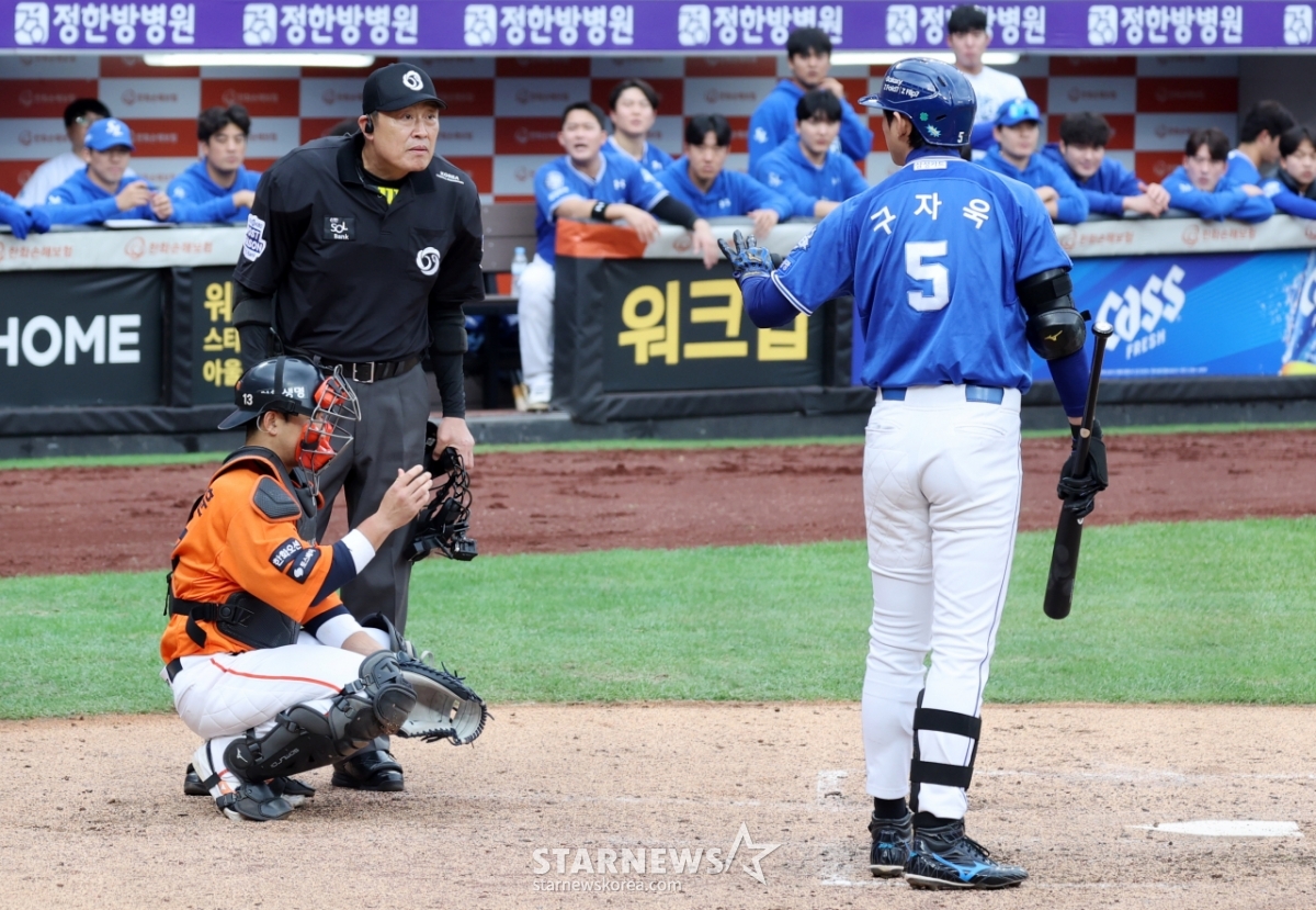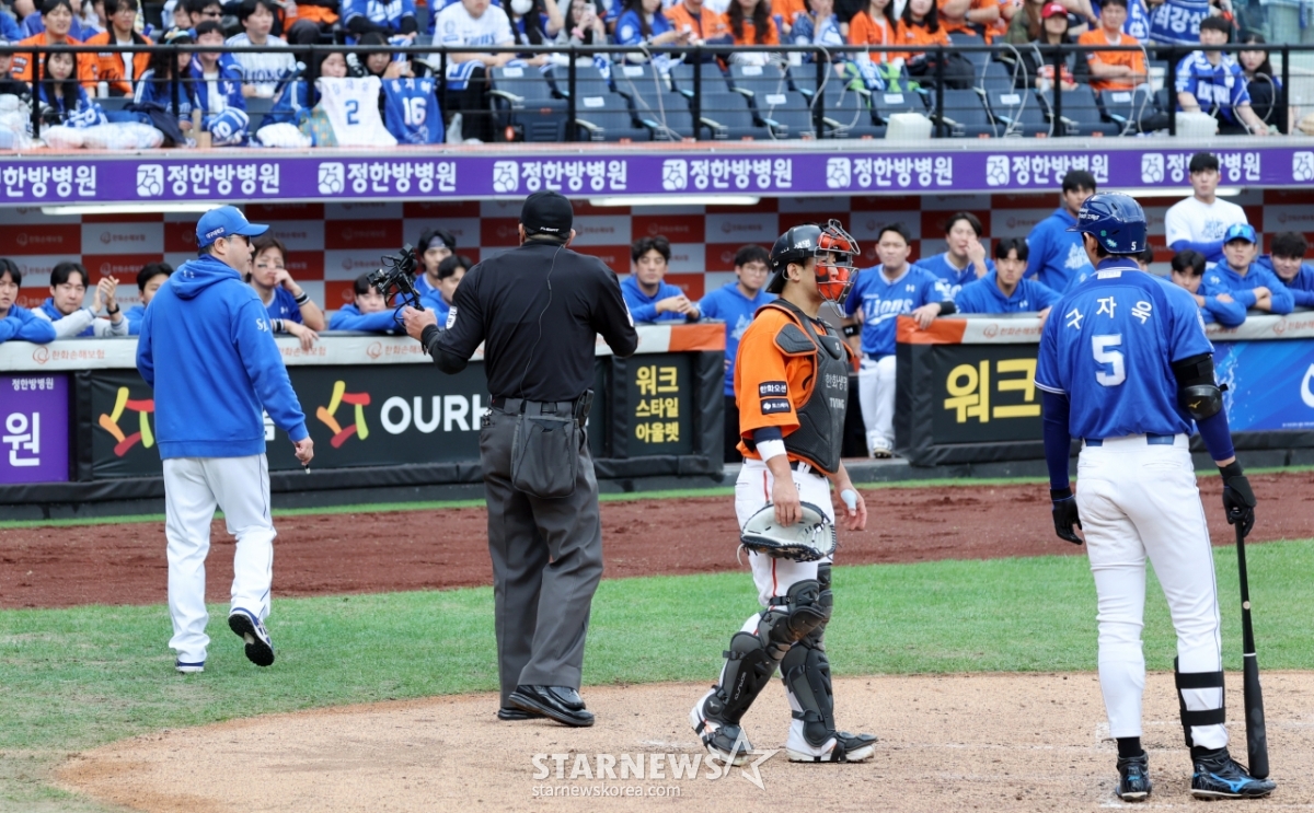 스포츠야구[한번에쓱]'폰세와 구자욱의 투구 인터볼 신경전' 양팀 감독도 참전발행 : 2025.10.18 ・ 15:43대전=강영조 선임기자삼성 3번타자 구자욱이 18일 대전한화생명볼파크에서 열리는 2025 KBO리그 삼성라이온즈와 한화이글스 플레이오프 1차전 3회초 무사 1,3루에서 폰세의 투구인벌일 길자 신경전이 벌어졌다. 박기택 구심의 두 선수에 대한 경고, 양팀 감독의 그라운드 출동 등 신경전이 길어졌다. 025.10.18.<저작권자 © 스타뉴스, 무단전재 및 재배포 금지>폰세구자욱삼성신경전투구감독추천 기사강영조 선임기자기자홈좋아요 스포츠-야구의 인기 급상승 뉴스스포츠-야구의 최신 뉴스