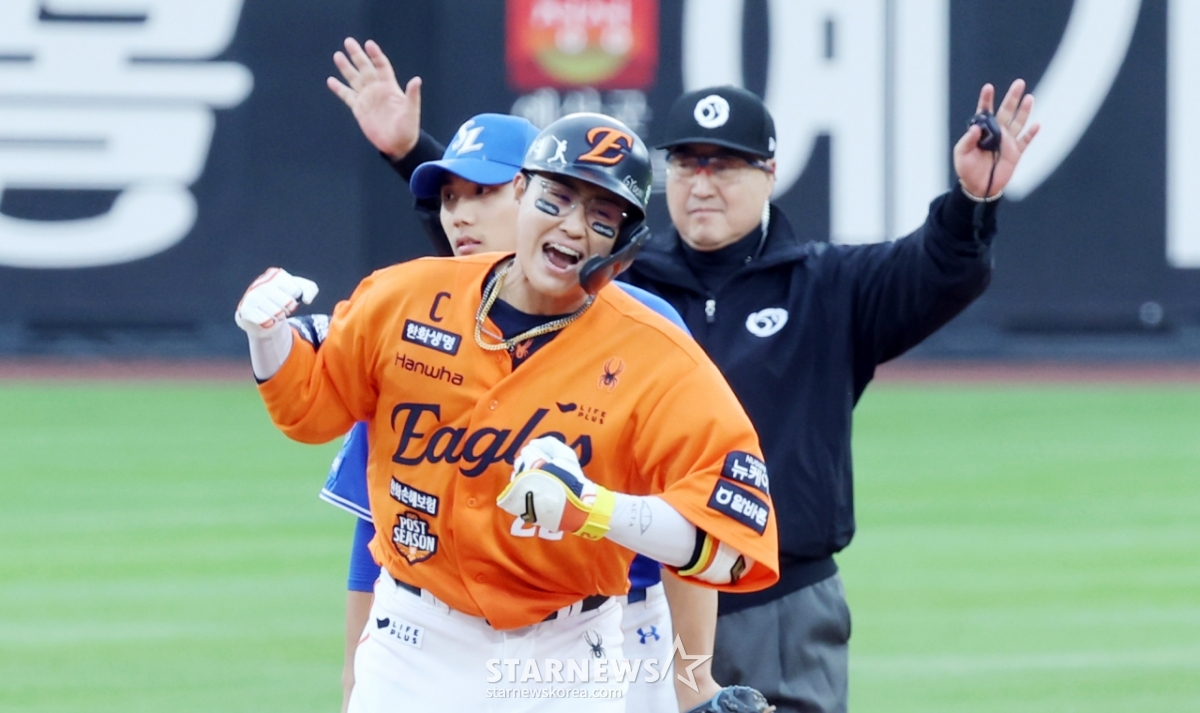 스포츠야구[포토]'6회말 역전2타점 2루타' 채은성발행 : 2025.10.18 ・ 16:44대전=강영조 선임기자한화 5번타자 채은성이 18일 대전한화생명볼파크에서 열리는 2025 KBO리그 삼성라이온즈와 한화이글스 플레이오프 1차전 6회말 2사 2,3루에서 역전 2타점 2루타를 터트린 후 환호하고 있다. 025.10.18.<저작권자 © 스타뉴스, 무단전재 및 재배포 금지>브리핑요약 없이도 가볍게 읽으실 수 있는 짧은 뉴스입니다.추천 기사강영조 선임기자기자홈좋아요스포츠-야구의 인기 급상승 뉴스스포츠-야구의 최신 뉴스