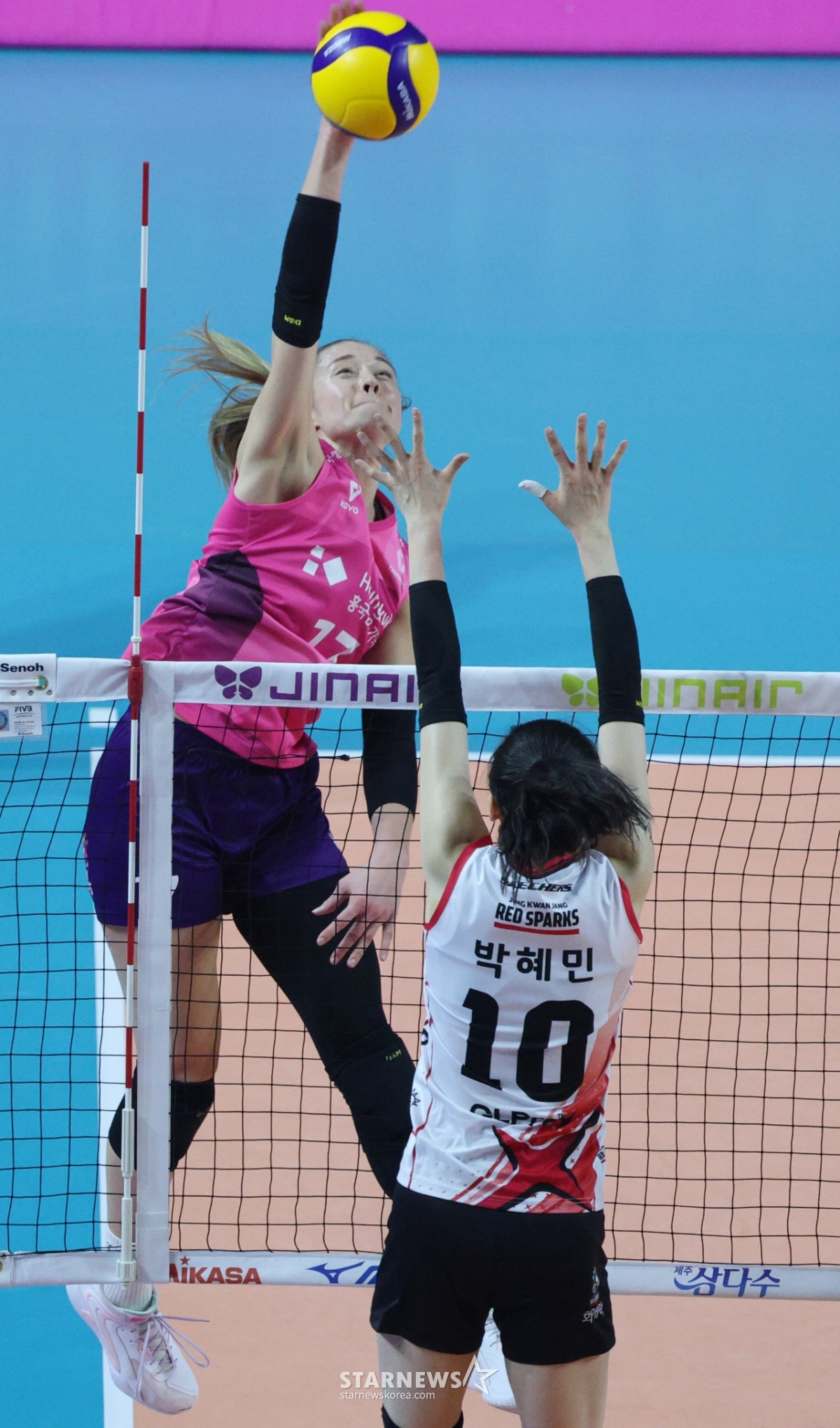 스포츠일반[포토] 레베카 '고공 폭격'발행 : 2025.10.18 ・ 16:57인천=김진경 대기자2025-2026시즌 V리그 여자부 개막전 흥국생명 대 정관장 경기가 18일 인천 삼산월드체육관에서 열렸다.흥국생명 레베카가 정관장 박혜민의 블로킹 위로 강스파이크를 날리고 있다.<저작권자 © 스타뉴스, 무단전재 및 재배포 금지>V리그진에어여자배구이다현흥국생명충무_쯔위추천 기사김진경 대기자기자홈좋아요 스포츠-일반의 인기 급상승 뉴스스포츠-일반의 최신 뉴스