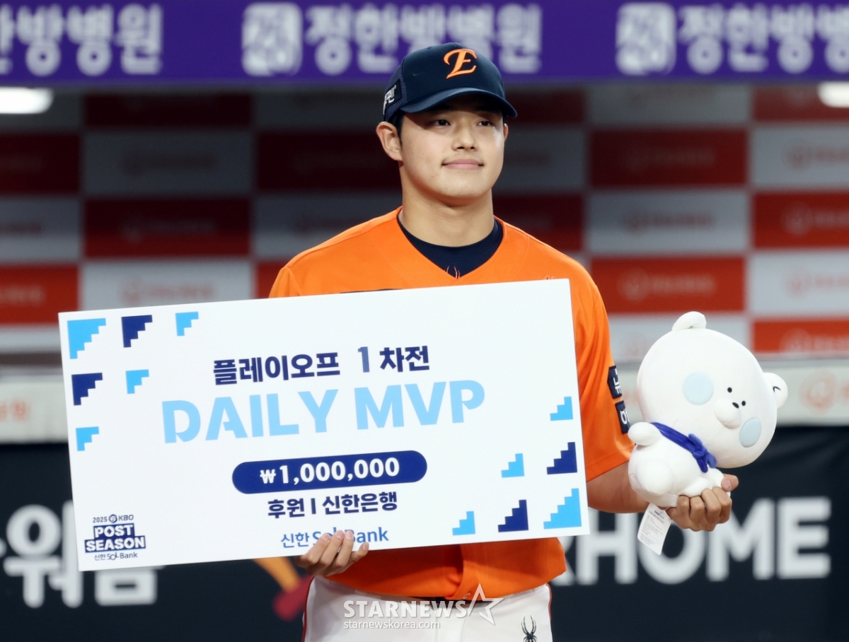 스포츠야구[포토]플레이오프 1차전 MVP는 2이닝 책임진 문동주발행 : 2025.10.18 ・ 18:03대전=강영조 선임기자한화 불펜변신 문동주가 18일 대전한화생명볼파크에서 열리는 2025 KBO리그 삼성라이온즈와 한화이글스 플레이오프 1차전 '데일리MVP'를 수상하고 있다. 2025.10.18.한화 불펜변신 문동주가 18일 대전한화생명볼파크에서 열리는 2025 KBO리그 삼성라이온즈와 한화이글스 플레이오프 1차전 '데일리MVP'를 수상하고 있다. 2025.10.18.<저작권자 © 스타뉴스, 무단전재 및 재배포 금지>문동주MVP대전볼파크삼성라이온즈추천 기사강영조 선임기자기자홈좋아요 스포츠-야구의 인기 급상승 뉴스스포츠-야구의 최신 뉴스