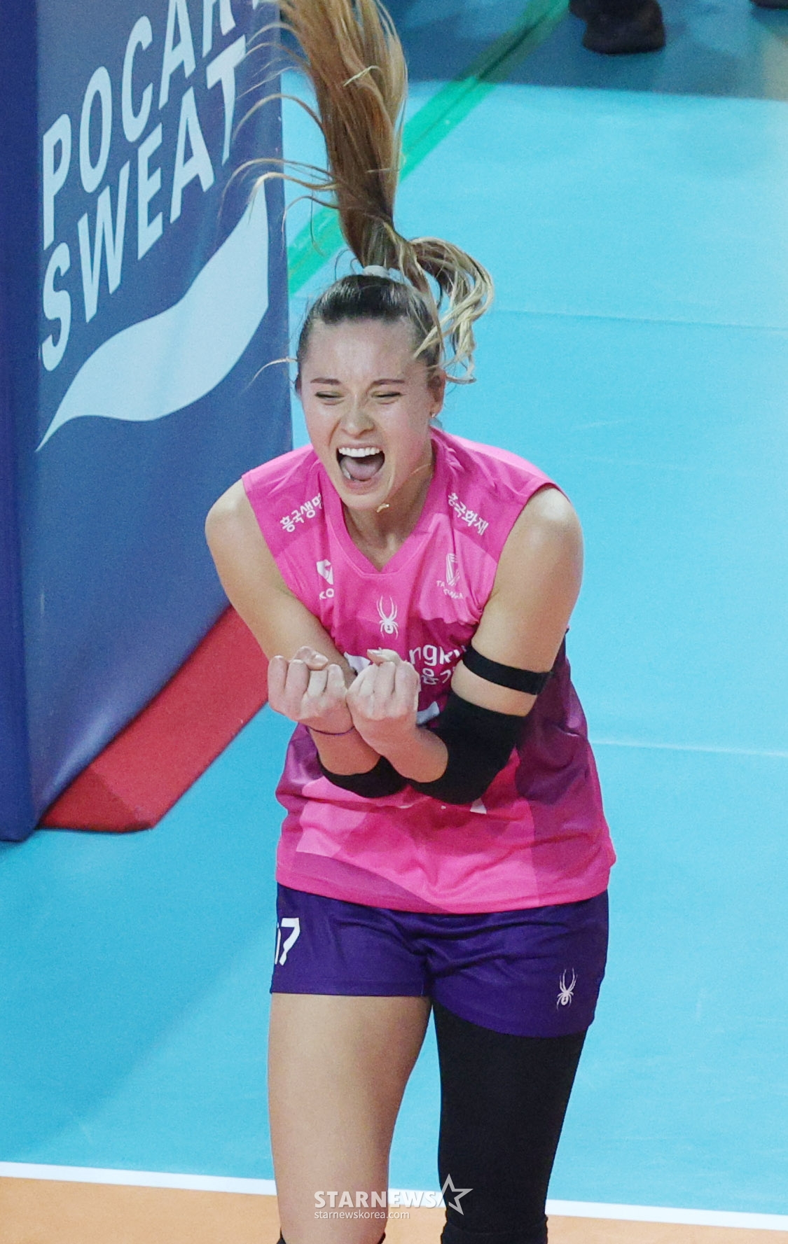 중요한 순간마다 날아올랐다. 첫 세트부터 10점을 책임지며 기선제압에 앞장선 그는 2세트에서도 9-9로 맞선 초반 연속 득점에 성공하며 흥국생명이 흐름을 잡는 데 일조했다. 3세트를 내주며 흔들리던 흥국생명이 4세트에 마침표를 찍을 수 있었던 것도 중요한 순간 터진 레베카의 득점포가 있었다. 특히 레베카는 상대가 추격의 불씨를 지피려 할 때마다 여지없이 날아올라 전·후위 공격을 성공시키며 상대 의지를 꺾었다. 레베카를 앞세운 흥국생명은 결국 정관장을 완파하고 개막전부터 승리를 따냈다.
