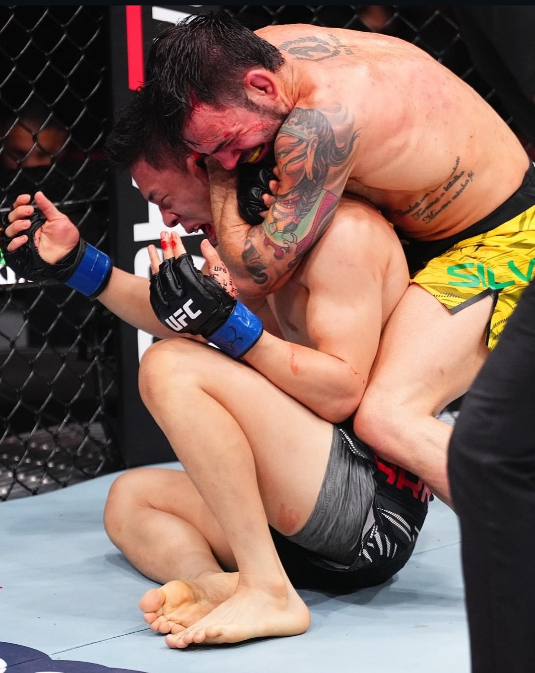 하지만 치열한 공방전 끝에 박현성은 끝내 실바에게 백 포지션을 허용했고, 3라운드에 탭을 치며 패배했다.