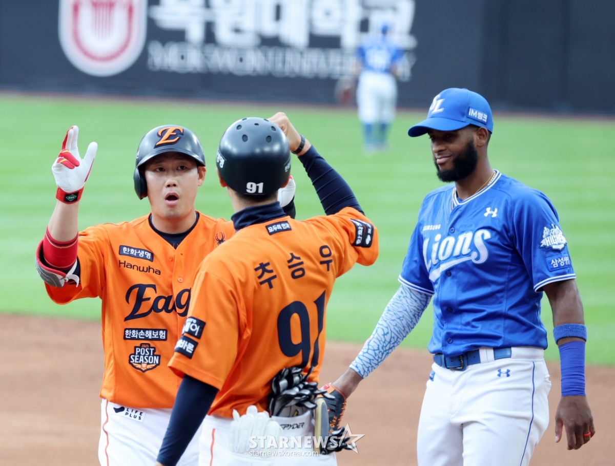 스포츠야구[한번에쓱] '예비신랑 하주석 활약에' 더 신난 김연정발행 : 2025.10.19 ・ 14:59수정 : 2025.10.24 ・ 09:30대전=강영조 선임기자한화 6번타자 하주석이 19일 대전한화생명볼파크에서 열리는 2025 KBO리그 삼성라이온즈와 한화이글스 플레이오프 2차전 2회말 안타로 출루하자 신나게 응원을 펼치고 있는 김연정. 2025.10.19.안타치고자축하는 하주석2루도루까지 성공하는 하주석<저작권자 © 스타뉴스, 무단전재 및 재배포 금지>브리핑요약 없이도 가볍게 읽으실 수 있는 짧은 뉴스입니다.추천 기사강영조 선임기자기자홈좋아요스포츠-야구의 인기 급상승 뉴스스포츠-야구의 최신 뉴스