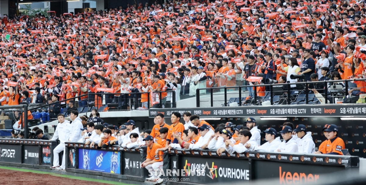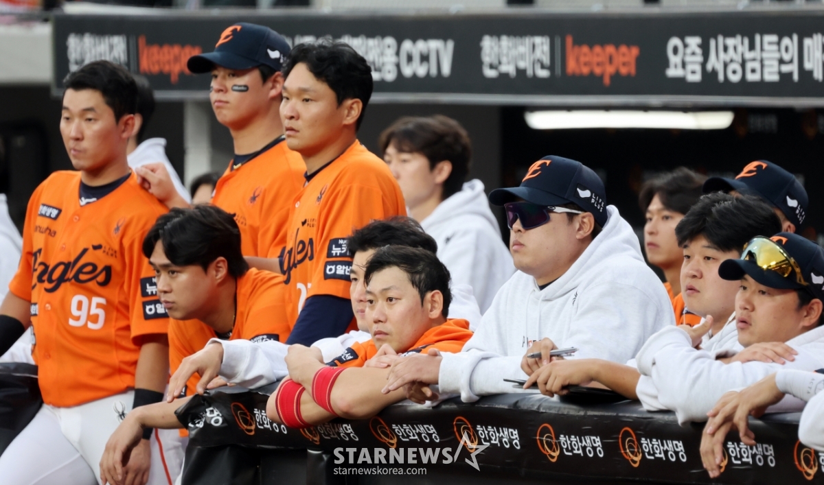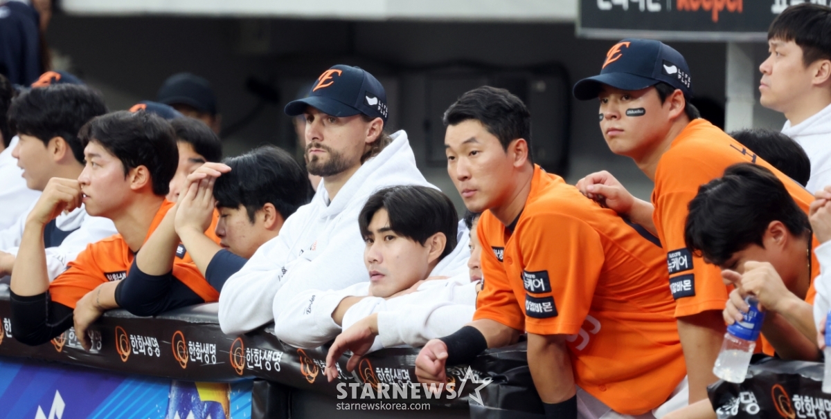 스포츠야구[포토]'1승후 1패 한화이글스' 아쉬움 가득한 선수단발행 : 2025.10.19 ・ 17:39대전=강영조 선임기자한화 선발투수 와이스와 선수들이 19일 대전한화생명볼파크에서 열리는 2025 KBO리그 삼성라이온즈와 한화이글스 플레이오프 2차전 9회말 공격을 지켜보고 있다. 2025.10.19.<저작권자 © 스타뉴스, 무단전재 및 재배포 금지>한화이글스선발투수와이스대전볼파크삼성추천 기사강영조 선임기자기자홈좋아요 스포츠-야구의 인기 급상승 뉴스스포츠-야구의 최신 뉴스