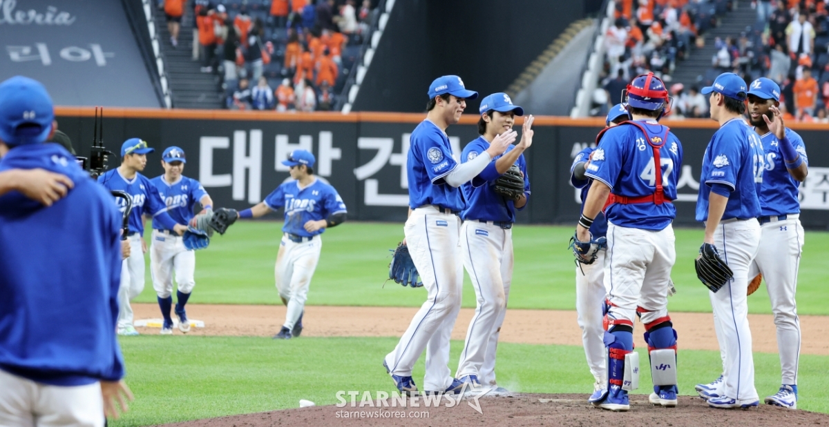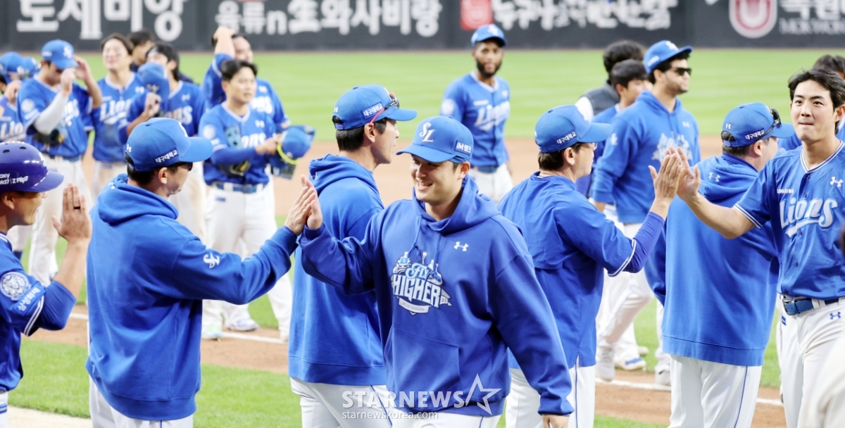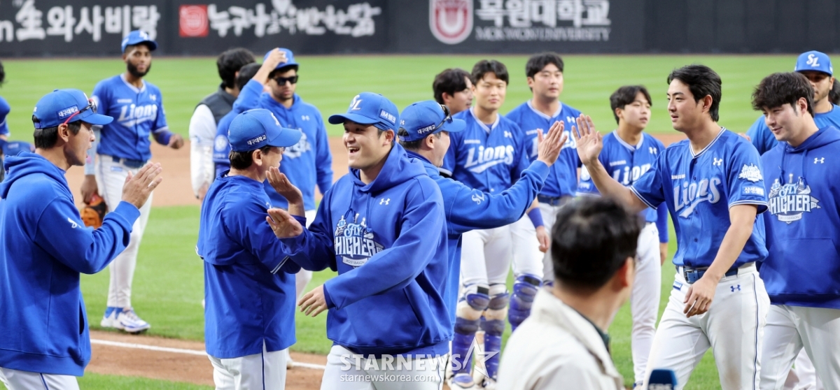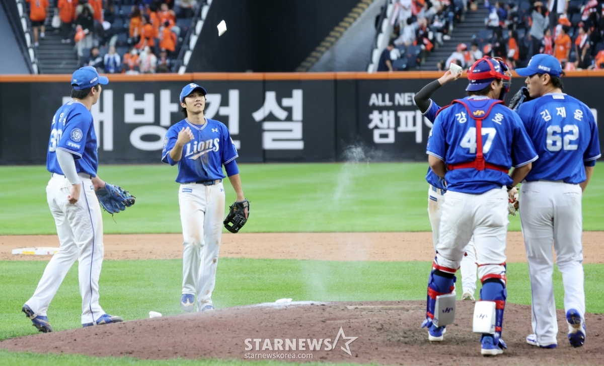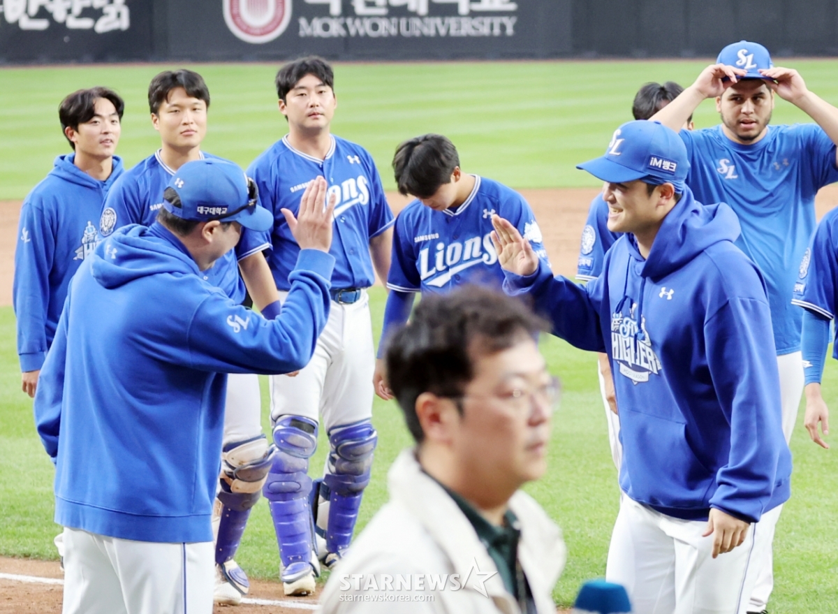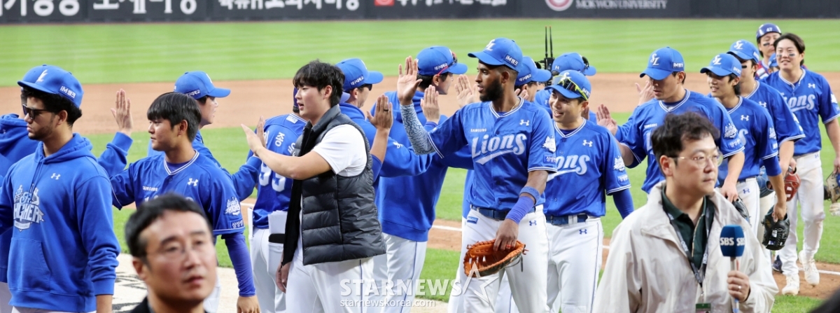 스포츠야구[포토]'이제 승부는 원점이다!' 승리 자축하는 삼성선수들발행 : 2025.10.19 ・ 17:42대전=강영조 선임기자삼성 최원태 등 선수들이 19일 대전한화생명볼파크에서 열리는 2025 KBO리그 삼성라이온즈와 한화이글스 플레이오프 2차전에서 승리한 후 자축하고 있다. 2025.10.19.삼성 디아즈 등 선수들이 19일 대전한화생명볼파크에서 열리는 2025 KBO리그 삼성라이온즈와 한화이글스 플레이오프 2차전에서 승리한 후 자축하고 있다. 2025.10.19.<저작권자 © 스타뉴스, 무단전재 및 재배포 금지>삼성대전볼파크라이온즈한화이글스승리추천 기사강영조 선임기자기자홈좋아요 스포츠-야구의 인기 급상승 뉴스스포츠-야구의 최신 뉴스