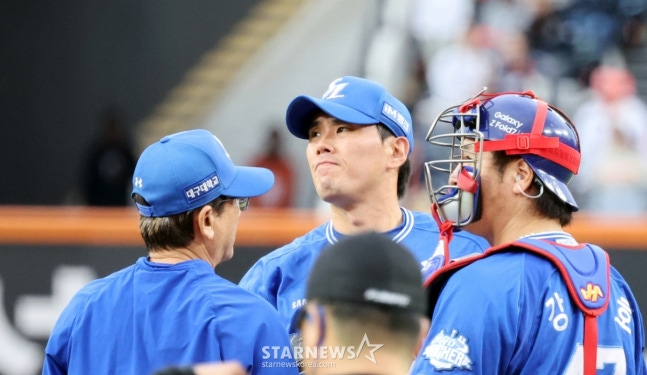 전날 폰세를 두들겼던 삼성 타선은 16승 투수 라이언 와이스에게도 화력을 보여줬다. 0-1로 뒤지던 3회초 무사 만루에서 구자욱의 내야 땅볼과 르윈 디아즈의 1타점 2루타, 김영웅의 2타점 적시타를 통해 4점을 올렸다. 다음 이닝에도 디아즈의 대형 2루타로 한 점을 보탰고, 9회초 강민호의 투런 홈런으로 7-1까지 달아났다.