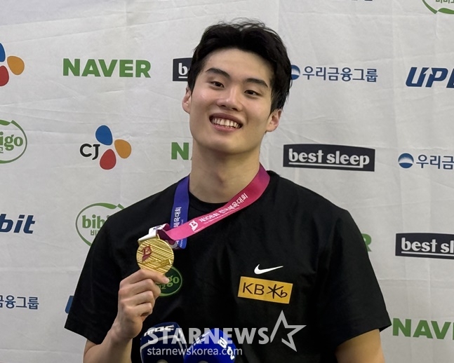 지난해 황선우는 파리 올림픽에서 자유형 200m 준결승 탈락의 아픔을 맛봤다. 그는 "큰 무대는 레이스 운용도 중요하다. 지금 1분 43초대가 나와도 다음에 나온다는 보장이 없다"며 "처음 나온 기록은 내 기록이 아니고 두세 번는 나와야 한다. 앞으로의 대회에서도 1분 43초대 나와야 한다"며 말했다.