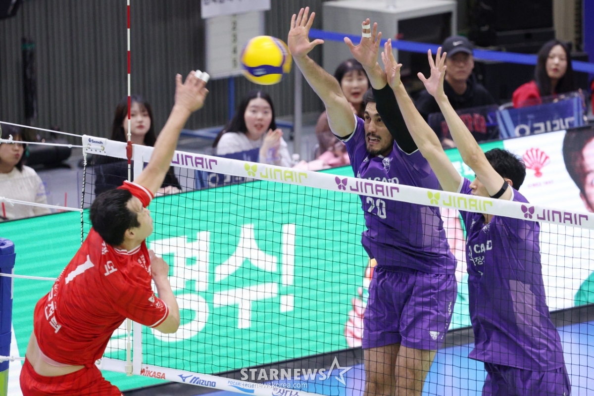 스포츠일반[포토] 아라우조 '이게 바로 철벽 블로킹'발행 : 2025.10.20 ・ 20:53수원=김진경 대기자2025-2026시즌 V리그 남자부 한국전력 대 우리카드 경기가 20일 경기도 수원체육관에서 열렸다.한국전력 아라우조(가운데)가 3세트에서 한국전력 서재덕의 스파이크를 완벽한 블로킹으로 틀어막고 있다.<저작권자 © 스타뉴스, 무단전재 및 재배포 금지>V리그진에어배구남자배구한국전력우리카드추천 기사김진경 대기자기자홈좋아요 스포츠-일반의 인기 급상승 뉴스스포츠-일반의 최신 뉴스