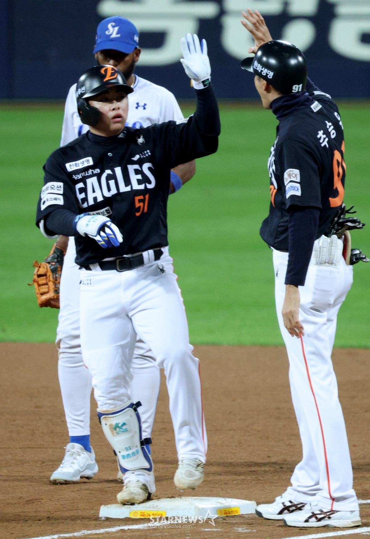 스포츠야구[포토] 문현빈 '포문 열었다'발행 : 2025.10.21 ・ 19:28대구=김진경 대기자2025 KBO리그 플레이오프 3차전 삼성 라이온즈 한화 이글스전이 21일 대구 삼성라이온즈파크에서 열렸다.한화 문현빈이 4회초 무서에서 중전 안타를 날리고 출루한 후 추승우 코치의 환영을 받고 있다.<저작권자 © 스타뉴스, 무단전재 및 재배포 금지>프로야구KBOPO플레이오프포스트시즌류현진추천 기사김진경 대기자기자홈좋아요 스포츠-야구의 인기 급상승 뉴스스포츠-야구의 최신 뉴스