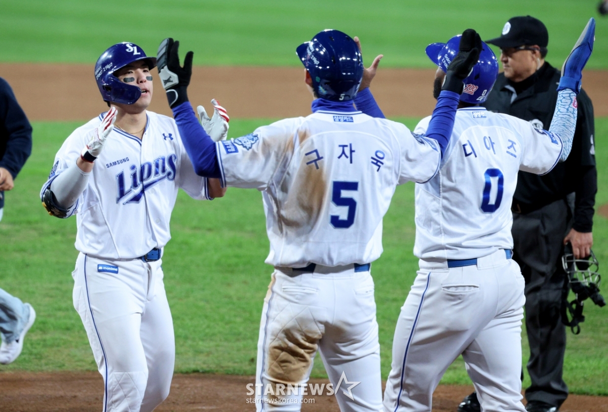 스포츠야구[포토] 김영웅, 구자욱-디아즈와 영웅놀이발행 : 2025.10.21 ・ 19:45대구=김진경 대기자2025 KBO리그 플레이오프 3차전 삼성 라이온즈 한화 이글스전이 21일 대구 삼성라이온즈파크에서 열렸다.삼성 김영웅이 4회말 1사 1,2루에서 역전 3점 홈런을 날리고 홈인하고 있다.<저작권자 © 스타뉴스, 무단전재 및 재배포 금지>프로야구KBOPO플레이오프포스트시즌류현진추천 기사김진경 대기자기자홈좋아요 스포츠-야구의 인기 급상승 뉴스스포츠-야구의 최신 뉴스