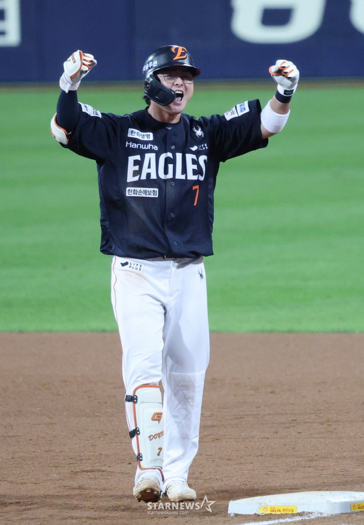 스포츠야구[포토] 이도윤 '독수리에겐 날개가 있다'발행 : 2025.10.21 ・ 19:50대구=김진경 대기자2025 KBO리그 플레이오프 3차전 삼성 라이온즈 한화 이글스전이 21일 대구 삼성라이온즈파크에서 열렸다.한화 이도윤이 4회초 2사 2루에서 1타점 적시타를 날리고 출루한 후 포효하고 있다.<저작권자 © 스타뉴스, 무단전재 및 재배포 금지>프로야구KBOPO플레이오프포스트시즌류현진추천 기사김진경 대기자기자홈좋아요 스포츠-야구의 인기 급상승 뉴스스포츠-야구의 최신 뉴스