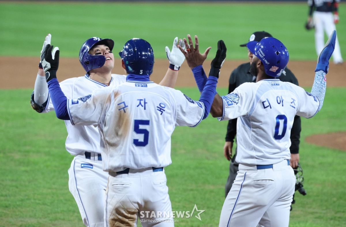 스포츠야구[포토] 김영웅 '3단 쌩스'발행 : 2025.10.21 ・ 20:03대구=김진경 대기자2025 KBO리그 플레이오프 3차전 삼성 라이온즈 한화 이글스전이 21일 대구 삼성라이온즈파크에서 열렸다.삼성 김영웅이 4회말 1사 1,2루에서 역전 3점 홈런을 날리고 홈인하고 있다.<저작권자 © 스타뉴스, 무단전재 및 재배포 금지>프로야구KBOPO플레이오프포스트시즌류현진추천 기사김진경 대기자기자홈좋아요 스포츠-야구의 인기 급상승 뉴스스포츠-야구의 최신 뉴스