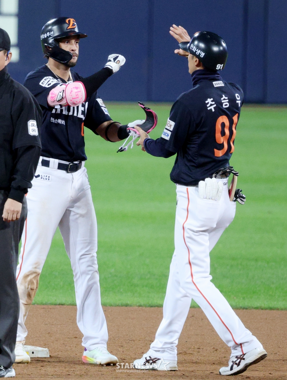 스포츠야구[포토] 리베라토 '잠실로 직행'발행 : 2025.10.21 ・ 20:28대구=김진경 대기자2025 KBO리그 플레이오프 3차전 삼성 라이온즈 한화 이글스전이 21일 대구 삼성라이온즈파크에서 열렸다.한화 리베라토가 5회초 1사 2루에서 1타점 적시 2루타를 날리고 출루한 후 추승우 코치의 환영을 받고 있다.<저작권자 © 스타뉴스, 무단전재 및 재배포 금지>프로야구KBOPO플레이오프포스트시즌류현진추천 기사김진경 대기자기자홈좋아요 스포츠-야구의 인기 급상승 뉴스스포츠-야구의 최신 뉴스