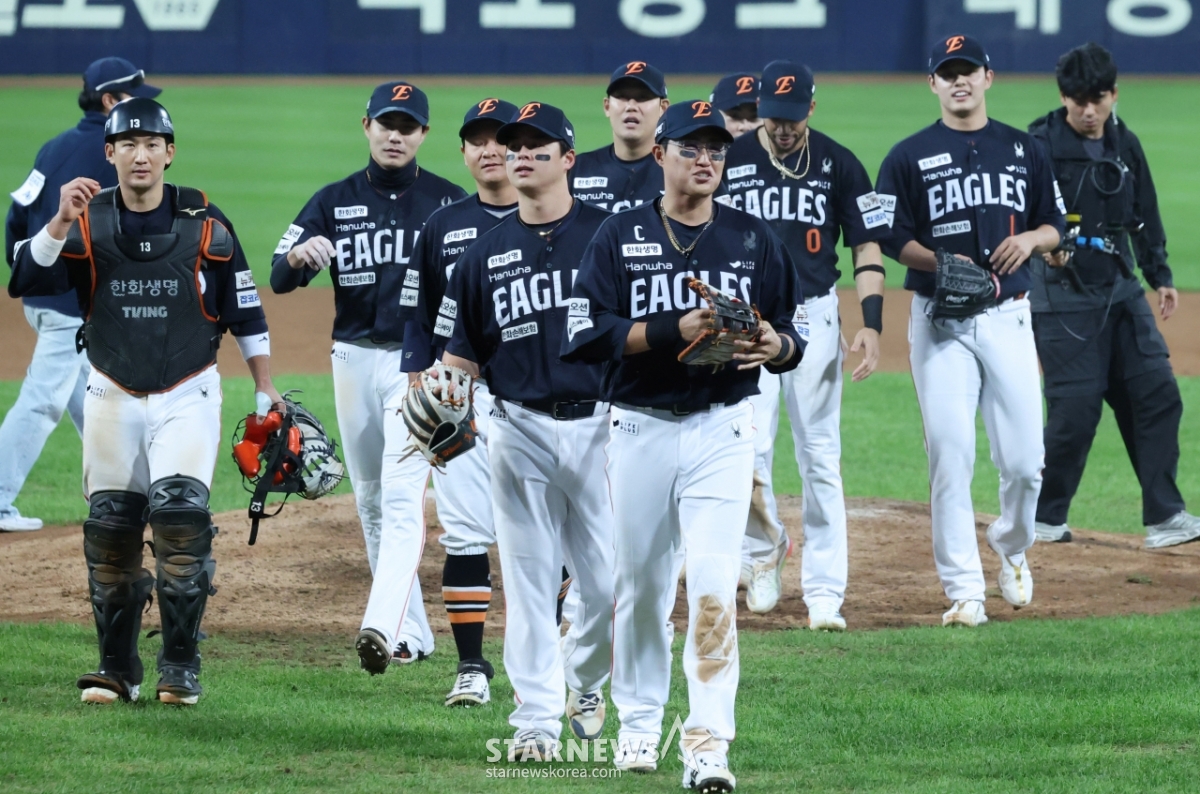 스포츠야구[포토] 달구벌 점령한 독수리 군단발행 : 2025.10.21 ・ 21:46대구=김진경 대기자2025 KBO리그 플레이오프 3차전 삼성 라이온즈 한화 이글스전이 21일 대구 삼성라이온즈파크에서 열렸다.한화 선수들이 삼성에 5-4로 승리한 후 기쁨을 나누고 있다.<저작권자 © 스타뉴스, 무단전재 및 재배포 금지>프로야구KBOPO플레이오프포스트시즌류현진추천 기사김진경 대기자기자홈좋아요 스포츠-야구의 인기 급상승 뉴스스포츠-야구의 최신 뉴스