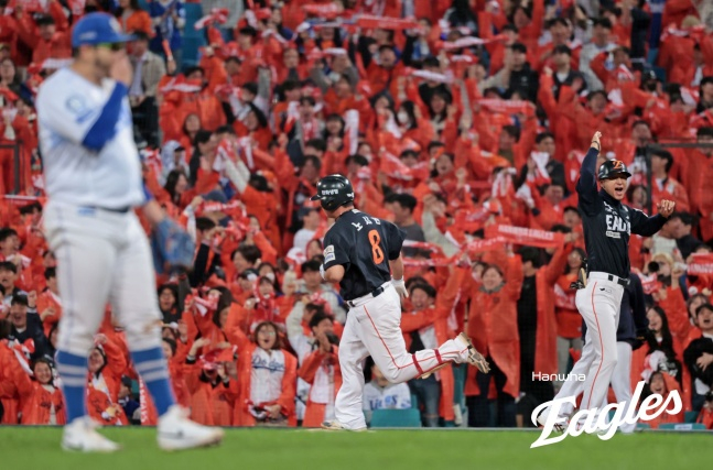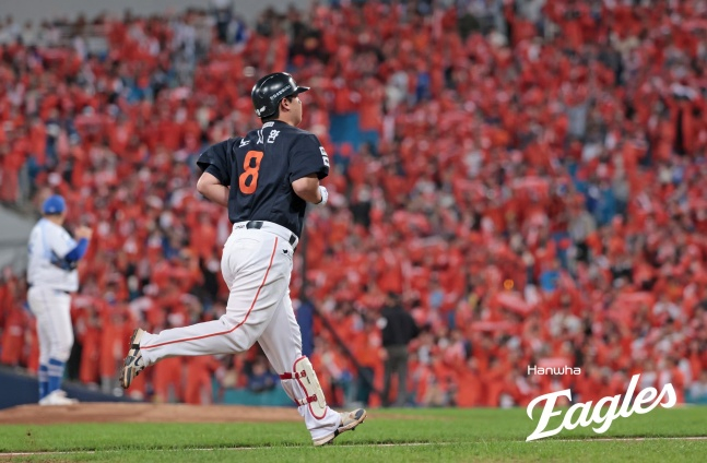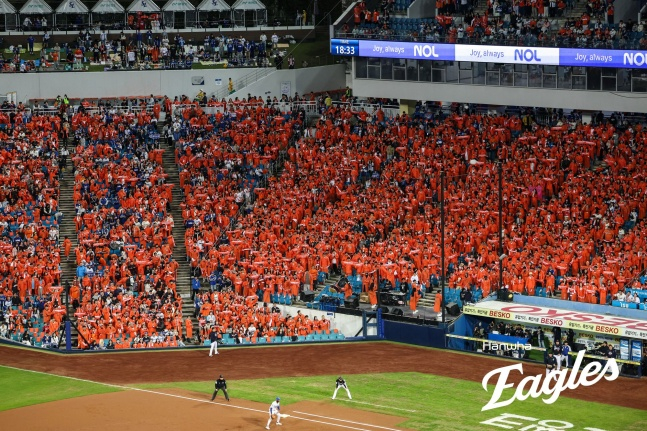 3루수이자 우타자인 그의 시선에는 늘 주황 물결이 일렁인다. 마침 대구삼성라이온즈파크는 원정팀이 1루였고, 이날도 2만 3680명의 만원 관중이 찾으면서 노시환은 홈구장 같은 분위기를 느낄 수 있었다.