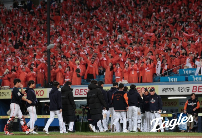 경기 후 취재진과 만난 노시환은 "5차전이라는 생각으로 경기에 임했는데, 정말 3차전에 승리하게 돼 기쁨이 두 배다. 마음 같아서는 전 타석 홈런을 치고 싶지만, 4차전에서도 꼭 중요한 순간에 홈런이 나왔으면 좋겠다"고 소감을 밝혔다.