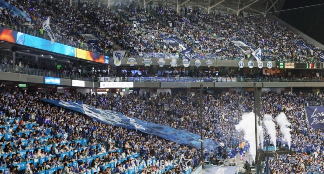 3루 쪽을 채운 홈팀 삼성의 팬들은 푸른색 옷으로 드레스코드를 통일하며 분위기를 압도했다. 이에 김영웅은 "(팬들에게) 항상 감사하다"며 "내가 3루수다 보니 더 잘 보인다"고 했다.