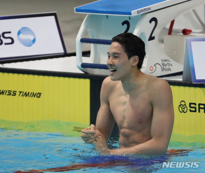 김영범은 전날(21일)에도 한국 신기록을 수립했다. 지난 21일 남자 계영 400m에서 황선우, 김우민, 양재훈과 팀을 이뤄 강원의 우승을 합작했다. 구간 기록 46초88을 작성한 김영범의 역영을 앞세운 강원은 3분11초52로 가장 먼저 결승선을 통과했다.