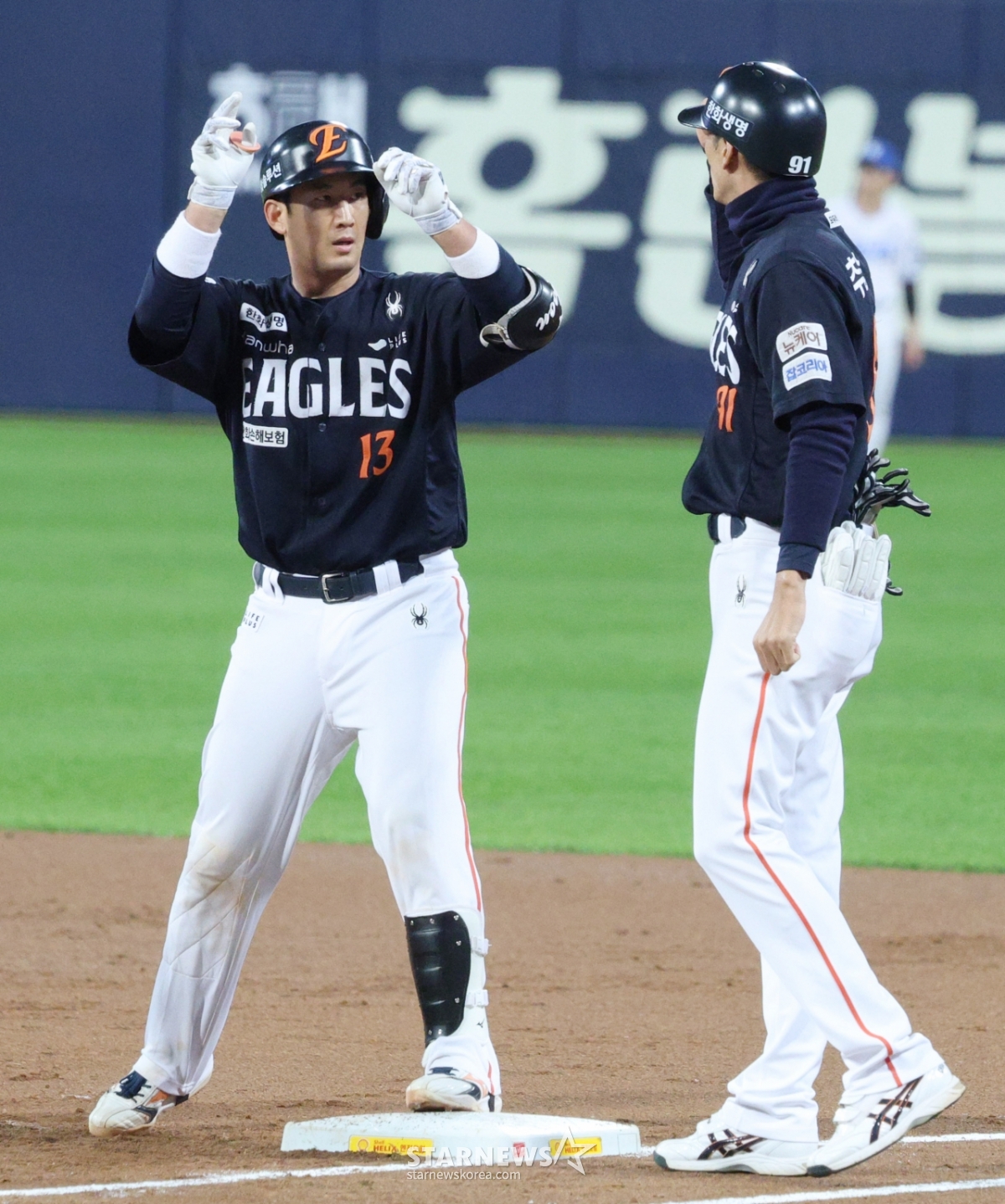 스포츠야구[포토] 최재훈 '야금야금 진격'발행 : 2025.10.22 ・ 19:11대구=김진경 대기자2025 KBO리그 플레이오프 4차전 삼성 라이온즈 대 한화 이글스전이 22일 대구 삼성라이온즈파크에서 열렸다.한화 최재훈이 2회초 2사에서 우전 안타로 출루한 후 세리머니를 하고 있다.<저작권자 © 스타뉴스, 무단전재 및 재배포 금지>프로야구KBOPO플레이오프포스트시즌류현진추천 기사김진경 대기자기자홈좋아요 스포츠-야구의 인기 급상승 뉴스스포츠-야구의 최신 뉴스