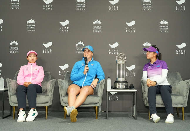 이들은 22일 경기 고양시 뉴코리아CC에서 열린 2025 한화 라이프플러스 인터내셔널 크라운 공식 기자회견에 나섰다.