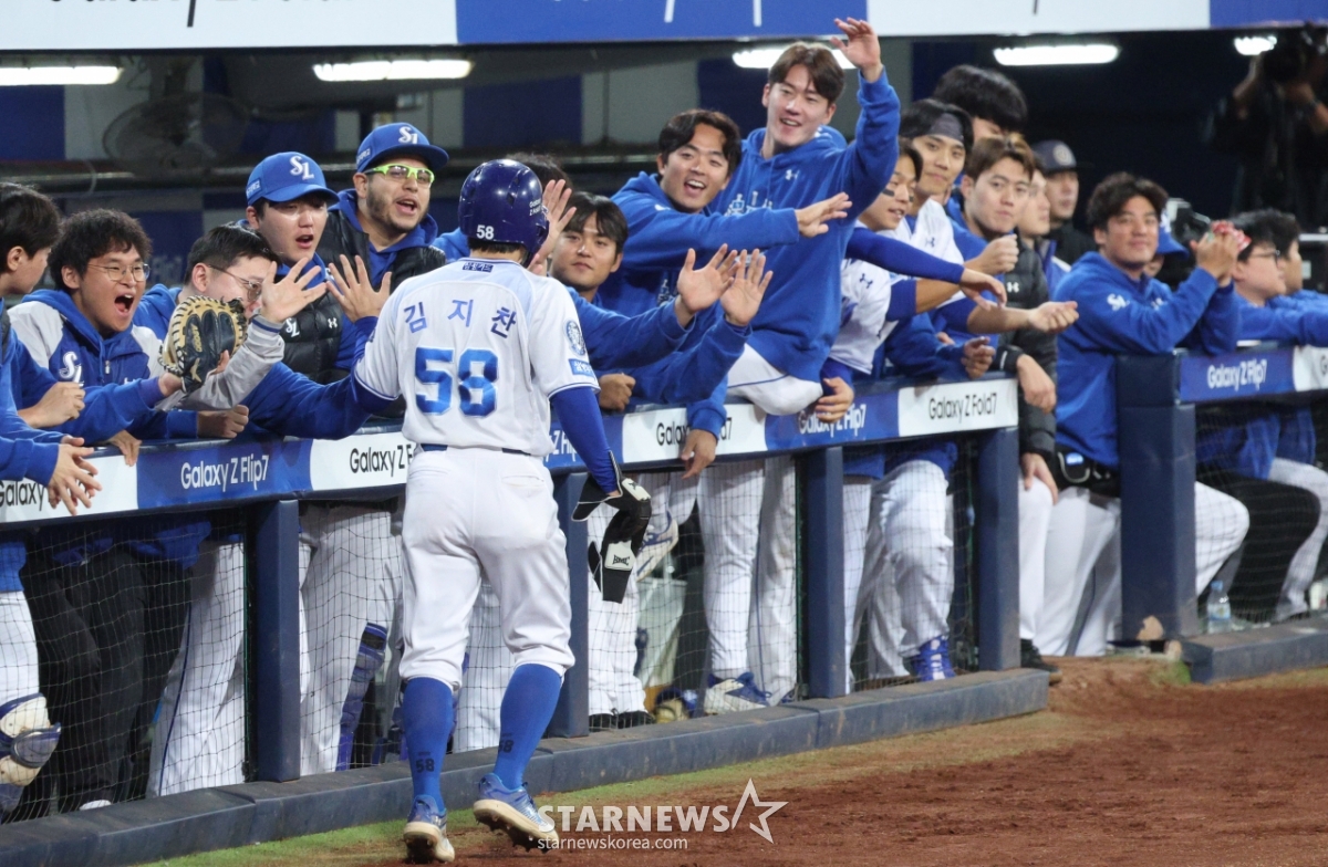 스포츠야구[포토] 김지찬 '복덩이 아니던가'발행 : 2025.10.22 ・ 21:00대구=김진경 대기자2025 KBO리그 플레이오프 4차전 삼성 라이온즈 대 한화 이글스전이 22일 대구 삼성라이온즈파크에서 열렸다.삼성 6회말 무사 3루에서 3루주자 김지찬이 구자욱의 적시타 때 득점한 후 동료들의 환영을 받고 있다.<저작권자 © 스타뉴스, 무단전재 및 재배포 금지>프로야구KBOPO플레이오프포스트시즌류현진추천 기사김진경 대기자기자홈좋아요 스포츠-야구의 인기 급상승 뉴스스포츠-야구의 최신 뉴스