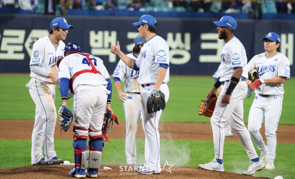 스포츠야구[포토] 김영웅 '강민호 꾸벅에 김재윤 엄지척이라니'발행 : 2025.10.22 ・ 21:55대구=김진경 대기자2025 KBO리그 플레이오프 4차전 삼성 라이온즈 대 한화 이글스전이 22일 대구 삼성라이온즈파크에서 열렸다.삼성이 한화에 7-4 대역전승을 거둔 후 김영웅에 감사를 표하고 있다.<저작권자 © 스타뉴스, 무단전재 및 재배포 금지>프로야구KBOPO플레이오프포스트시즌류현진추천 기사김진경 대기자기자홈좋아요 스포츠-야구의 인기 급상승 뉴스스포츠-야구의 최신 뉴스