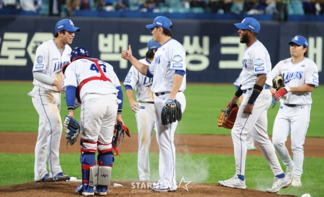 사자 군단의 캡틴과 푸른 피의 에이스도 같은 심정이었다. 주장 구장욱은 경기 후 취재진과 만나 "두 번째 홈런 때는 주자로 나가 있었는데 그냥 맞자마자 넘어간 걸 직감한 것 같다. 그냥 미친 것 같다"면서 "(김)영웅이가 워낙 클러치 능력이 뛰어난 선수라 모두가 믿고 있었다. 정말 영웅이가 우리 팀 선수라는 게 자랑스럽다"고 힘줘 말했다.
