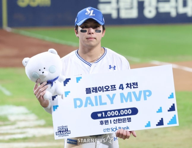 결국 김영웅은 4타수 3안타(2홈런) 6타점 2득점 맹타를 휘두르며 PO 4차전 MVP에 선정됐다. 또한 결승타 주인공에게 주어지는 '포테토칩 선정 오늘의 포텐터짐 상'에도 선정되면서 MVP 상금 100만 원과 별도로 상금 100만 원과 포테토칩 5박스를 또 수령했다.