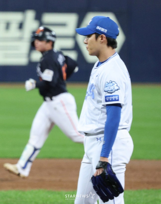 1회부터 원태인은 다소 불안하게 출발했다. 선두타자 손아섭을 잘 잡아냈지만 루이스 리베라토에게 좌익수 앞 빗맞은 안타를 내줬다. 이어 3번 문현빈에게 실투를 던졌다가 통타당해 우중간 2루타를 맞으면서 선취점을 내주고 말았다.
