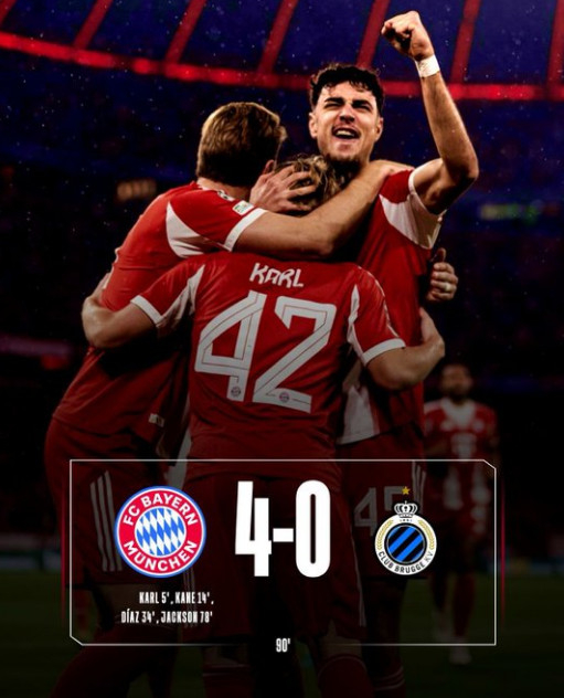 뮌헨은 23일 오전 4시(한국시간) 독일 뮌헨의 알리안츠 아레나에서 열린 클럽 브뤼헤(벨기에)와의 '2025~2026시즌 유럽축구연맹(UEFA) 챔피언스리그(UCL)' 리그 페이즈 3차전 홈 경기에서 4-0으로 완승했다.