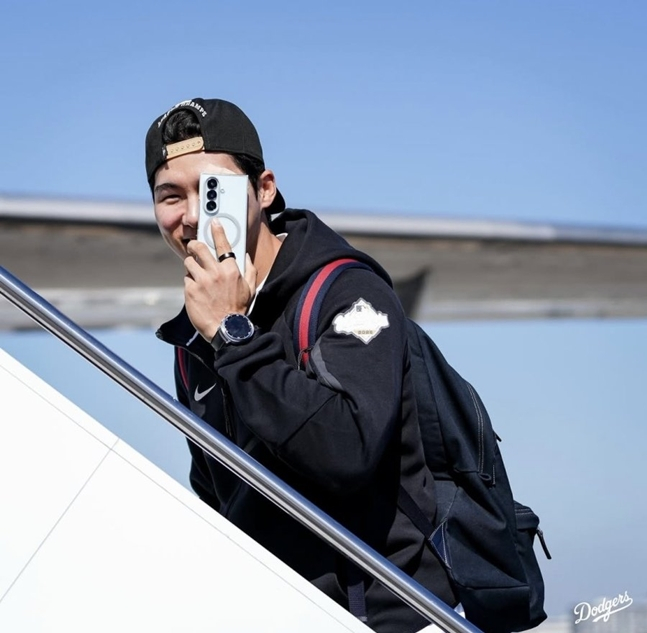 김혜성(26·LA 다저스)이 월드시리즈를 치르기 위해 토론토로 향하는 비행기에 탑승했다. 다만 김혜성의 얼굴 쪽에 가벼운 부상이 있는 것으로 보인다.