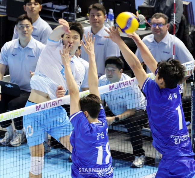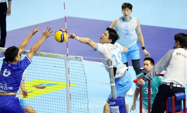 이날 정지석의 공격 성공률은 무려 68.97%에 달했다. 양 팀 사이드 공격 중 최고의 효율(58.62%)도 자랑했다.
