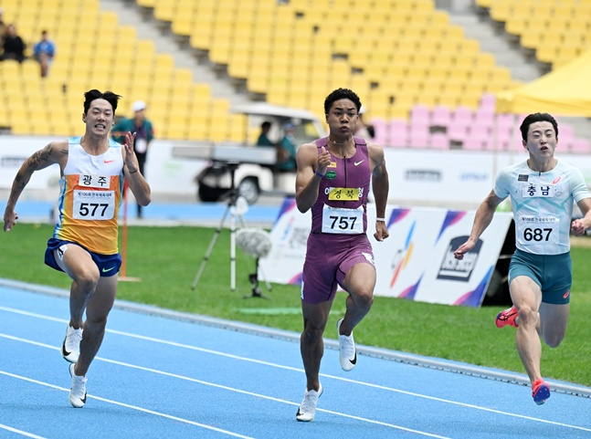 육상 단거리 기대주 나마디 조엘진(19·예천군청)은 성인 무대 데뷔 첫해에 남자 일반부 100m(10초35), 200m(20초70), 그리고 400m 계주까지 석권하며 3관왕을 달성했다. 역도 박혜정(22·고양시청)은 여자 일반부 87kg 이상급에서 인상 123kg, 용상 155kg, 합계 278kg을 들어 올리며 2년 연속 전국체전 3관왕에 올랐고 육상 우상혁(29·용인시청)은 남자일반부 높이뛰기 1위로 전국체육대회 통산 10회 우승의 대업을 달성했다.