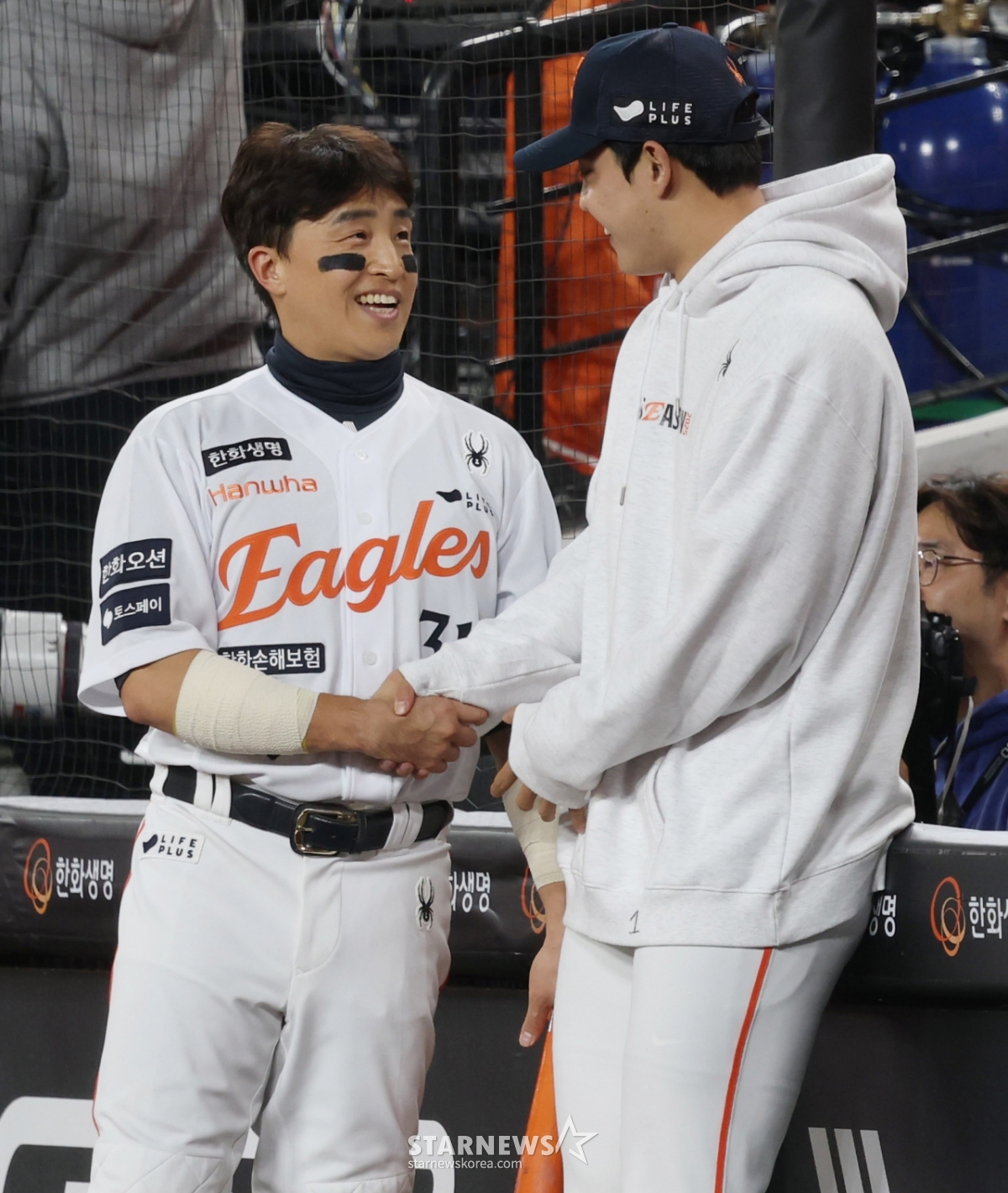 스포츠야구[포토] 손아섭 '응원단장 문동주와 악수'발행 : 2025.10.24 ・ 18:15대전=김진경 대기자2025 KBO리그 플레이오프 5차전 한화 이글스 대 삼성 라이온즈전이 24일 대전 한화생명 볼파크에서 열렸다.한화 손아섭이 문동주와 악수하고 있다.<저작권자 © 스타뉴스, 무단전재 및 재배포 금지>프로야구KBOPO플레이오프포스트시즌류현진추천 기사김진경 대기자기자홈좋아요 스포츠-야구의 인기 급상승 뉴스스포츠-야구의 최신 뉴스