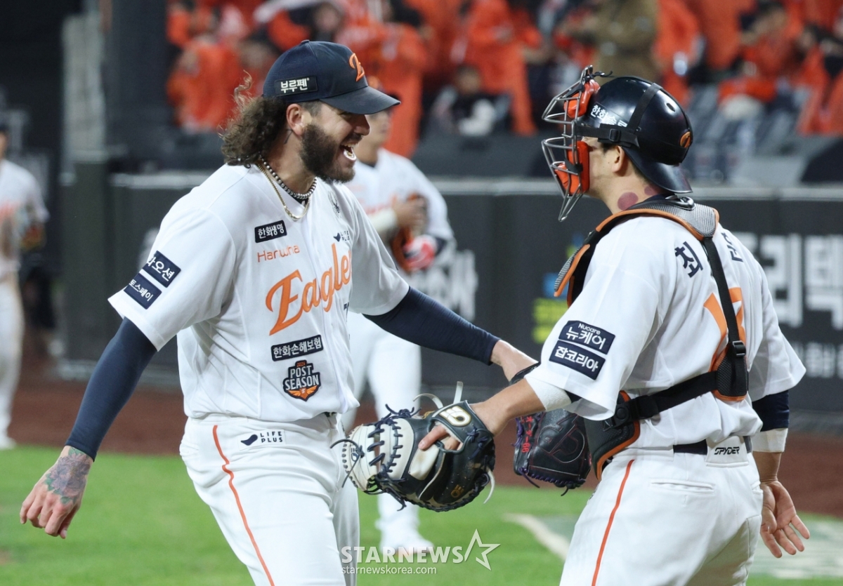 스포츠야구[포토] 폰세 '1회 위기 넘겼다'발행 : 2025.10.24 ・ 18:49대전=김진경 대기자2025 KBO리그 플레이오프 5차전 한화 이글스 대 삼성 라이온즈전이 24일 대전 한화생명 볼파크에서 열렸다.한화 선발 폰세가 1회초 2사 만루에서 삼성 김태훈을 스트라이크아웃 낫아웃으로 처리한 후 포수 최재훈과 기뻐하고 있다.<저작권자 © 스타뉴스, 무단전재 및 재배포 금지>프로야구KBOPO플레이오프포스트시즌류현진추천 기사김진경 대기자기자홈좋아요 스포츠-야구의 인기 급상승 뉴스스포츠-야구의 최신 뉴스