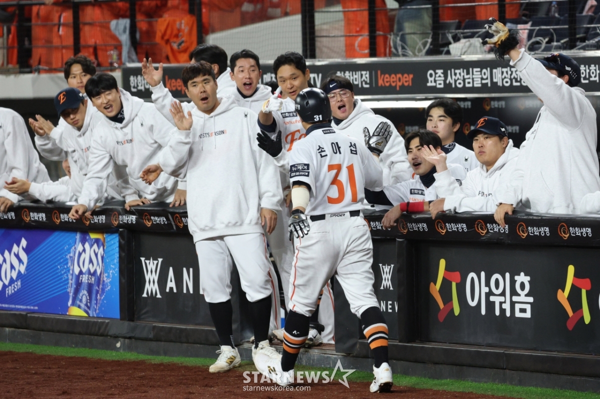 스포츠야구[포토] 손아섭 '돌아온 이글스 오빠'발행 : 2025.10.24 ・ 19:14대전=김진경 대기자2025 KBO리그 플레이오프 5차전 한화 이글스 대 삼성 라이온즈전이 24일 대전 한화생명 볼파크에서 열렸다.한화 1회말 1사 2,3루에서 3루주자 손아섭이 노시환의 적시타 때 선제 득점한 후 동료들의 환영을 받고 있다.<저작권자 © 스타뉴스, 무단전재 및 재배포 금지>브리핑요약 없이도 가볍게 읽으실 수 있는 짧은 뉴스입니다.추천 기사김진경 대기자기자홈좋아요스포츠-야구의 인기 급상승 뉴스스포츠-야구의 최신 뉴스