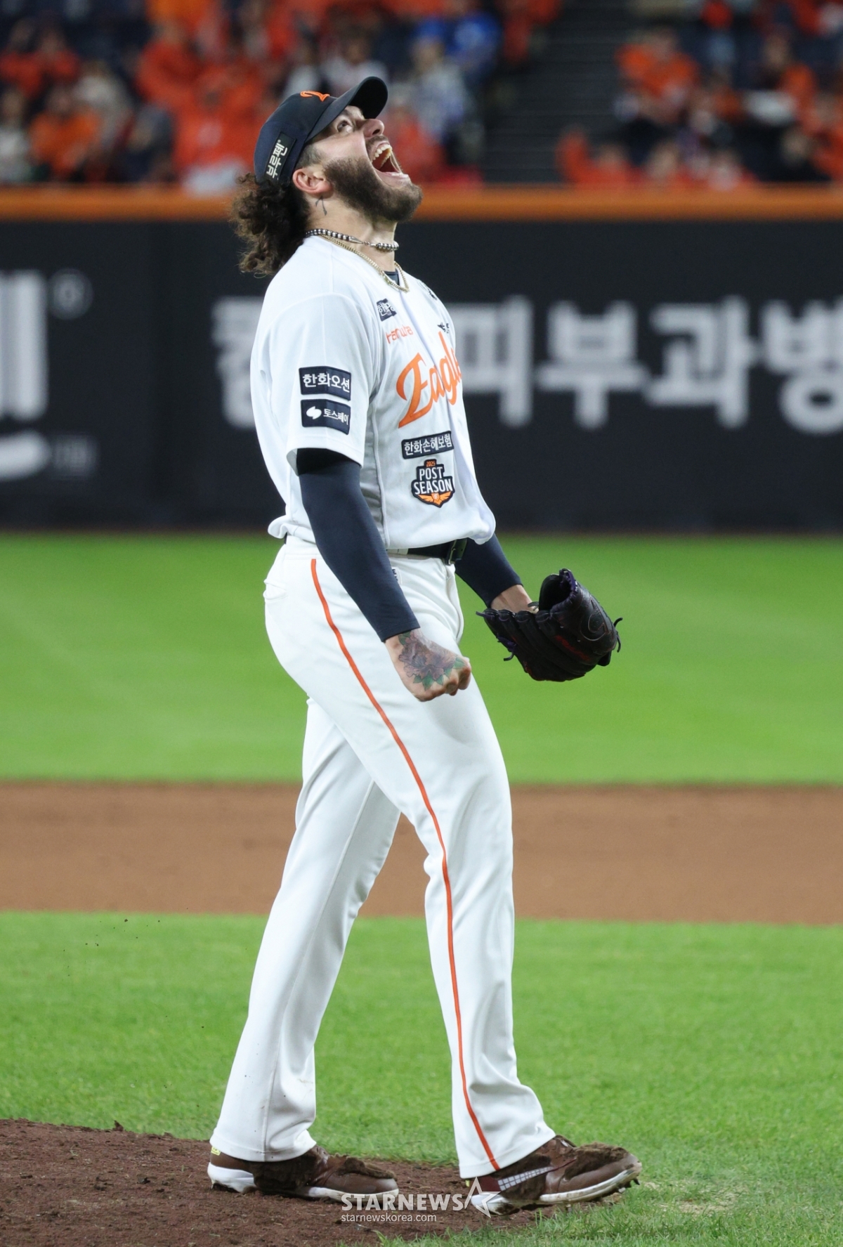 스포츠야구[포토] 폰세 '디아즈 잡았다'발행 : 2025.10.24 ・ 20:58대전=김진경 대기자2025 KBO리그 플레이오프 5차전 한화 이글스 대 삼성 라이온즈전이 24일 대전 한화생명 볼파크에서 열렸다.한화 선발 폰세가 5회초 2사에서 삼성 디아즈를 삼진으로 돌려세운 후 포효하고 있다<저작권자 © 스타뉴스, 무단전재 및 재배포 금지>프로야구KBO플레이오프5차전폰세최원태추천 기사김진경 대기자기자홈좋아요 스포츠-야구의 인기 급상승 뉴스스포츠-야구의 최신 뉴스