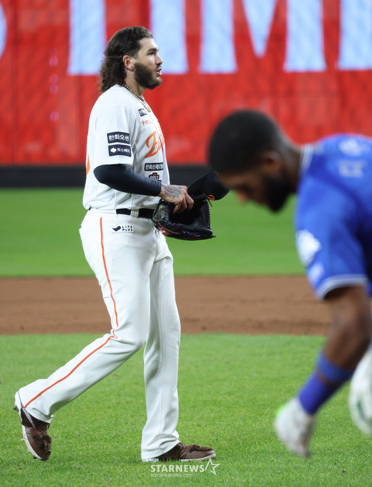 스포츠야구[포토] 폰세 '디아즈 미안해'발행 : 2025.10.24 ・ 21:19대전=김진경 대기자2025 KBO리그 플레이오프 5차전 한화 이글스 대 삼성 라이온즈전이 24일 대전 한화생명 볼파크에서 열렸다.한화 선발 폰세가 5회초 2사에서 삼성 디아즈를 삼진으로 돌려세운 후 기뻐하고 있다<저작권자 © 스타뉴스, 무단전재 및 재배포 금지>프로야구KBO플레이오프5차전폰세최원태추천 기사김진경 대기자기자홈좋아요 스포츠-야구의 인기 급상승 뉴스스포츠-야구의 최신 뉴스