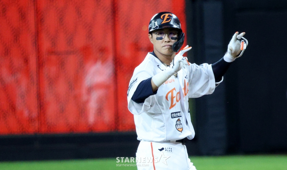 스포츠야구[포토] 채은성 '승부는 여기서 끝났어'발행 : 2025.10.24 ・ 21:31대전=김진경 대기자2025 KBO리그 플레이오프 5차전 한화 이글스 대 삼성 라이온즈전이 24일 대전 한화생명 볼파크에서 열렸다.한화 채은성이 5회초 무사 2,3루에서 2타점 적시타를 날리고 출루한 후 세리머니를 하고 있다.<저작권자 © 스타뉴스, 무단전재 및 재배포 금지>프로야구KBO플레이오프5차전폰세최원태추천 기사김진경 대기자기자홈좋아요 스포츠-야구의 인기 급상승 뉴스스포츠-야구의 최신 뉴스