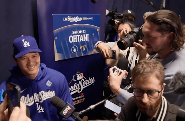 메이저리그 공식 홈페이지 MLB.com과 미국 스포츠 일러스트레이티드 등에 따르면 오타니는 24일(한국시간) 캐나다 토론토에 위치한 로저스 센터에서 열린 월드시리즈 공식 미디어데이 데이에서 난처한(?) 질문을 받았다.