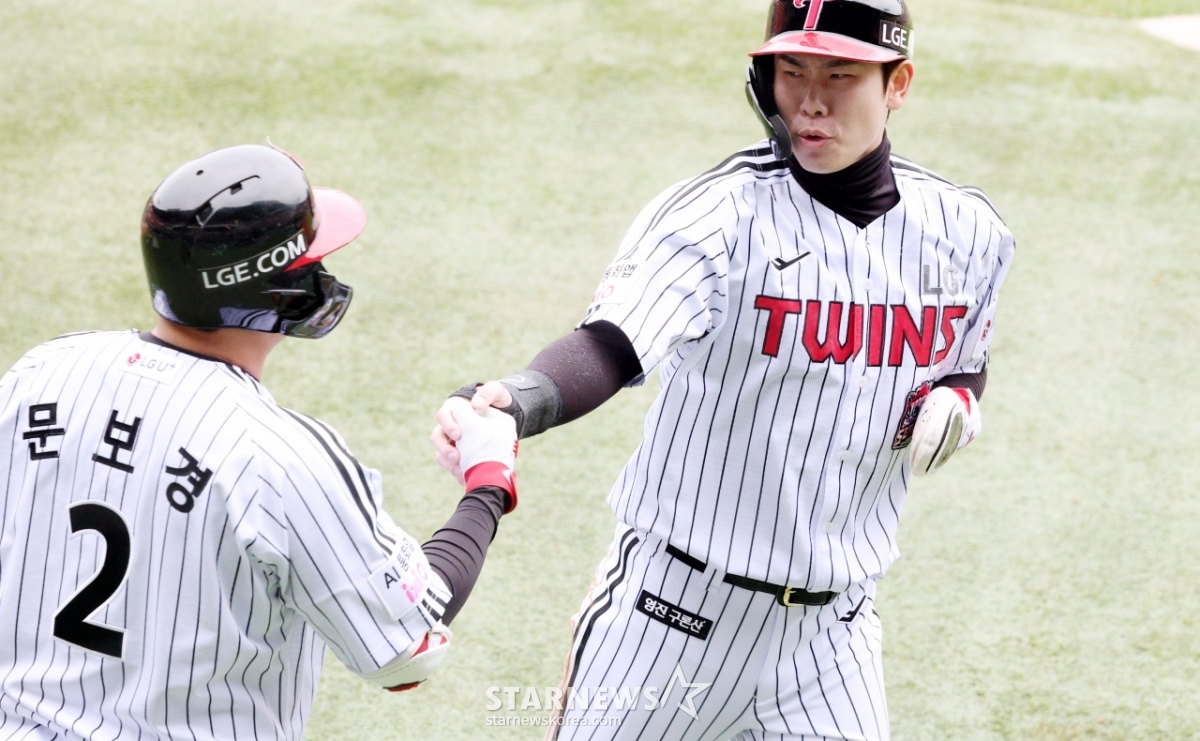 스포츠야구[포토] 홍창기 '선빵 날렸다'발행 : 2025.10.26 ・ 14:34잠실=김진경 대기자2025 KBO리그 한국시리즈 1차전 LG 트윈스 대 한화 이글스전이 26일 잠실야구장에서 열렸다.LG 1회말 1사 2,3루에서 3루주자 홍창기가 김현수의 내야땅볼 때 선제 득점한 후 문보경과 하이파이하고 있다.<저작권자 © 스타뉴스, 무단전재 및 재배포 금지>프로야구KBO폰세김경문_감독노시환하주석추천 기사김진경 대기자기자홈좋아요 스포츠-야구의 인기 급상승 뉴스스포츠-야구의 최신 뉴스