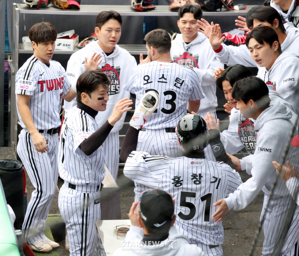 스포츠야구[포토] 홍창기 '1회부터 잔치로구나'발행 : 2025.10.26 ・ 14:36잠실=김진경 대기자2025 KBO리그 한국시리즈 1차전 LG 트윈스 대 한화 이글스전이 26일 잠실야구장에서 열렸다.LG 1회말 1사 2,3루에서 3루주자 홍창기가 김현수의 내야땅볼 때 선제 득점한 후 동료들과 하이파이하고 있다.<저작권자 © 스타뉴스, 무단전재 및 재배포 금지>프로야구KBO폰세김경문_감독노시환하주석추천 기사김진경 대기자기자홈좋아요 스포츠-야구의 인기 급상승 뉴스스포츠-야구의 최신 뉴스