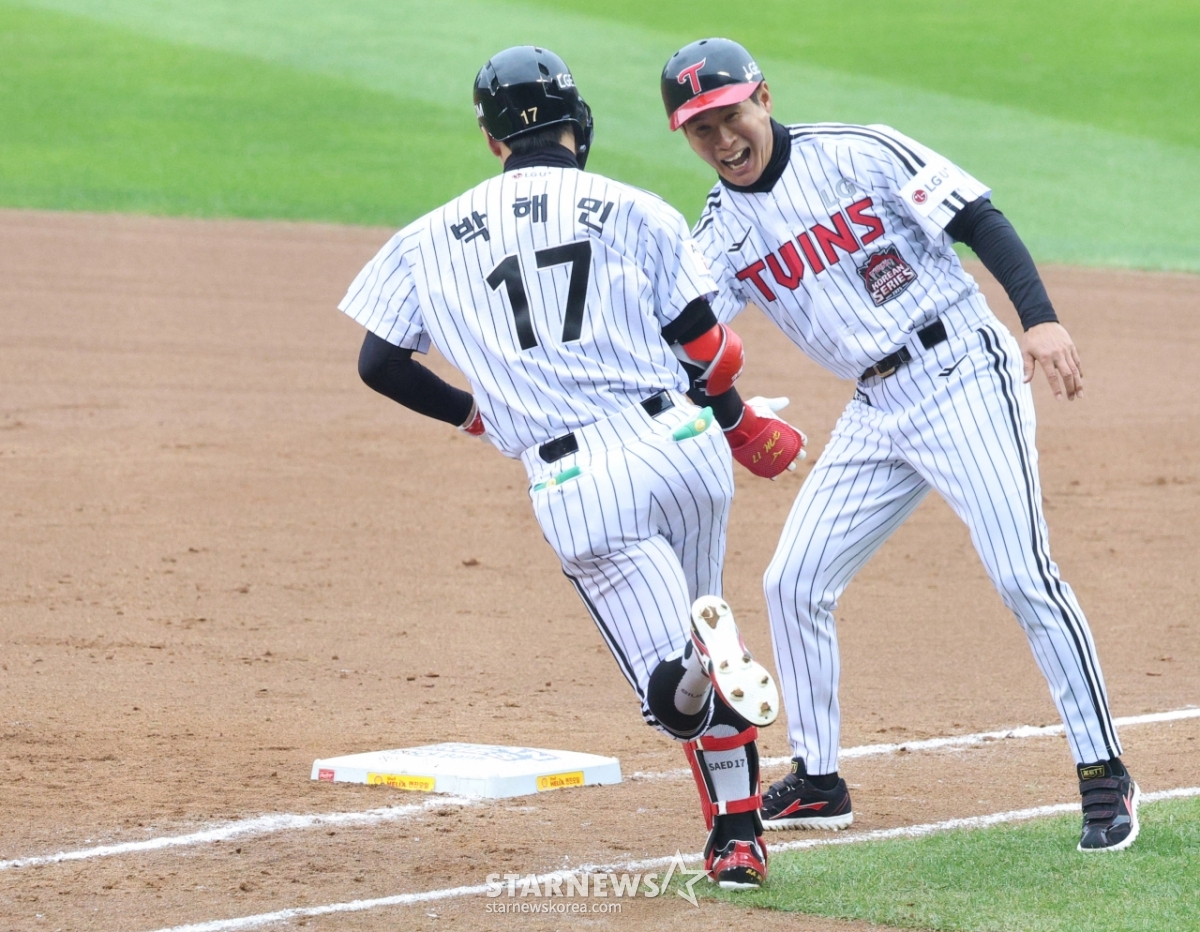 스포츠야구[포토] 박해민 '코치님 표정이 더 짜릿'발행 : 2025.10.26 ・ 15:35잠실=김진경 대기자2025 KBO리그 한국시리즈 1차전 LG 트윈스 대 한화 이글스전이 26일 잠실야구장에서 열렸다.LG 박해민이 5회말 무사에서 우월 1점 홈런을 날리고 다이아몬드를 돌고 있다.<저작권자 © 스타뉴스, 무단전재 및 재배포 금지>프로야구KBO폰세김경문_감독노시환하주석추천 기사김진경 대기자기자홈좋아요 스포츠-야구의 인기 급상승 뉴스스포츠-야구의 최신 뉴스