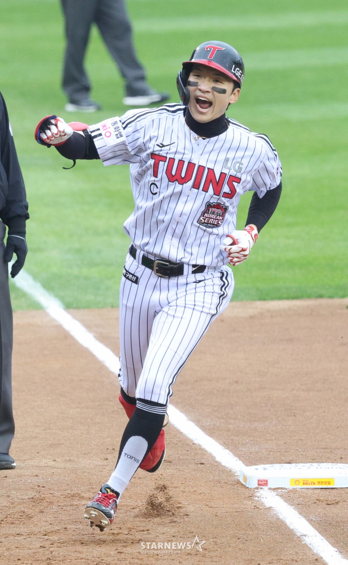 스포츠야구[포토] 박해민 '승기 확실히 잡았어'발행 : 2025.10.26 ・ 15:40잠실=김진경 대기자2025 KBO리그 한국시리즈 1차전 LG 트윈스 대 한화 이글스전이 26일 잠실야구장에서 열렸다.LG 박해민이 5회말 무사에서 한화 선발 문동주를 상대로 우월 1점 홈런을 날리고 홈인하고 있다.<저작권자 © 스타뉴스, 무단전재 및 재배포 금지>프로야구KBO폰세김경문_감독노시환하주석추천 기사김진경 대기자기자홈좋아요 스포츠-야구의 인기 급상승 뉴스스포츠-야구의 최신 뉴스